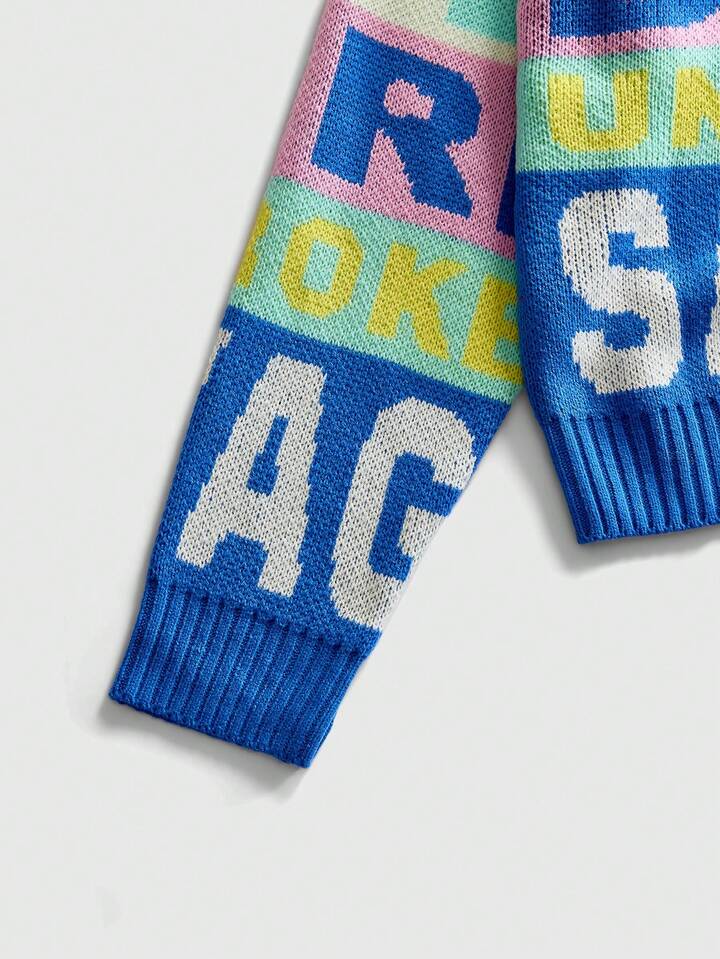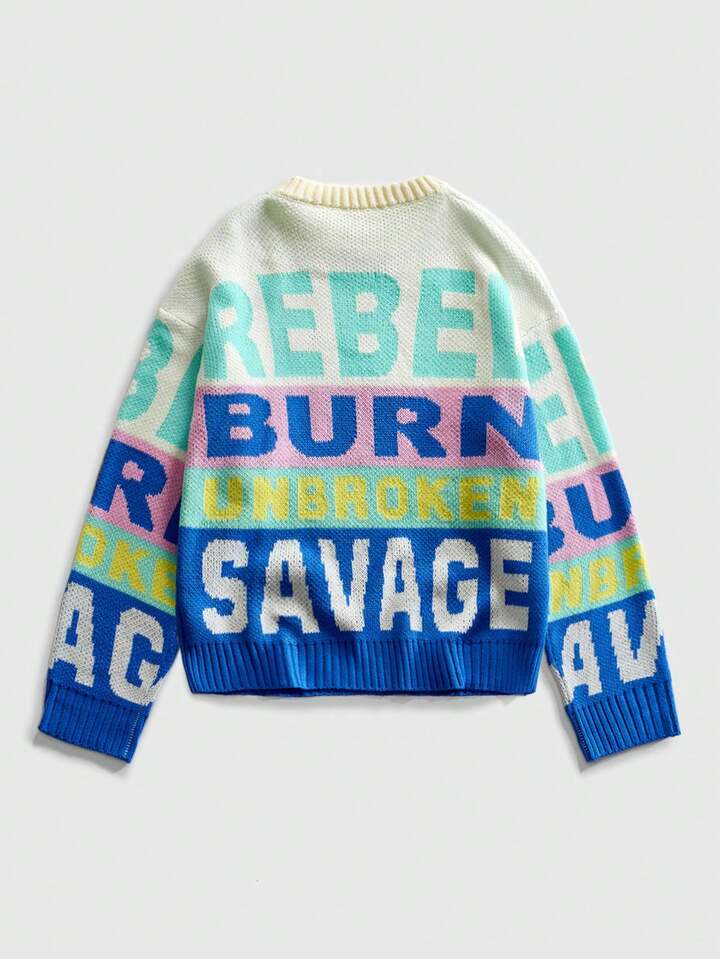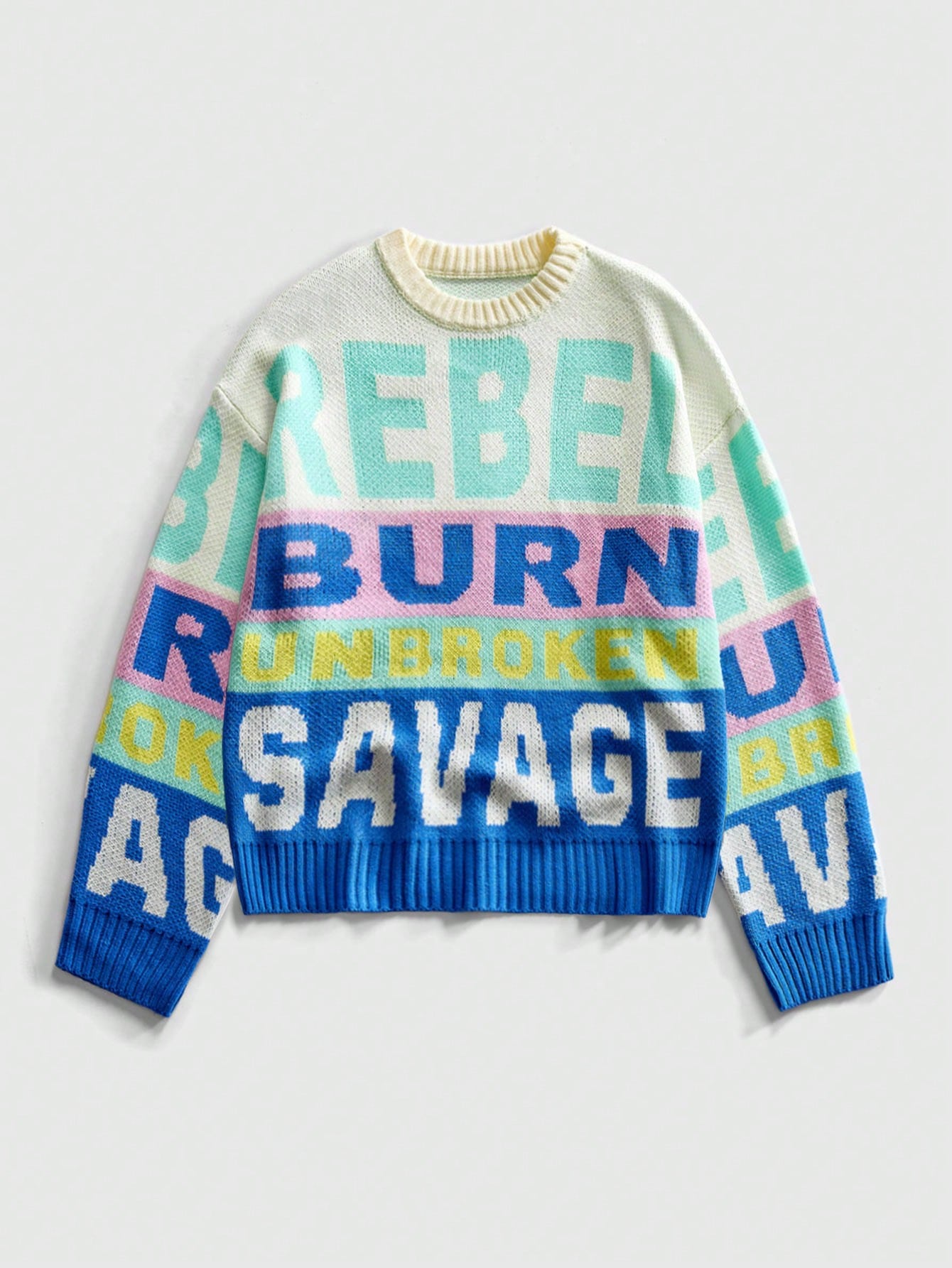 Street Life Men's Letter Jacquard Crew Neck Long Sleeve Casual Sweater, Autumn/Winter