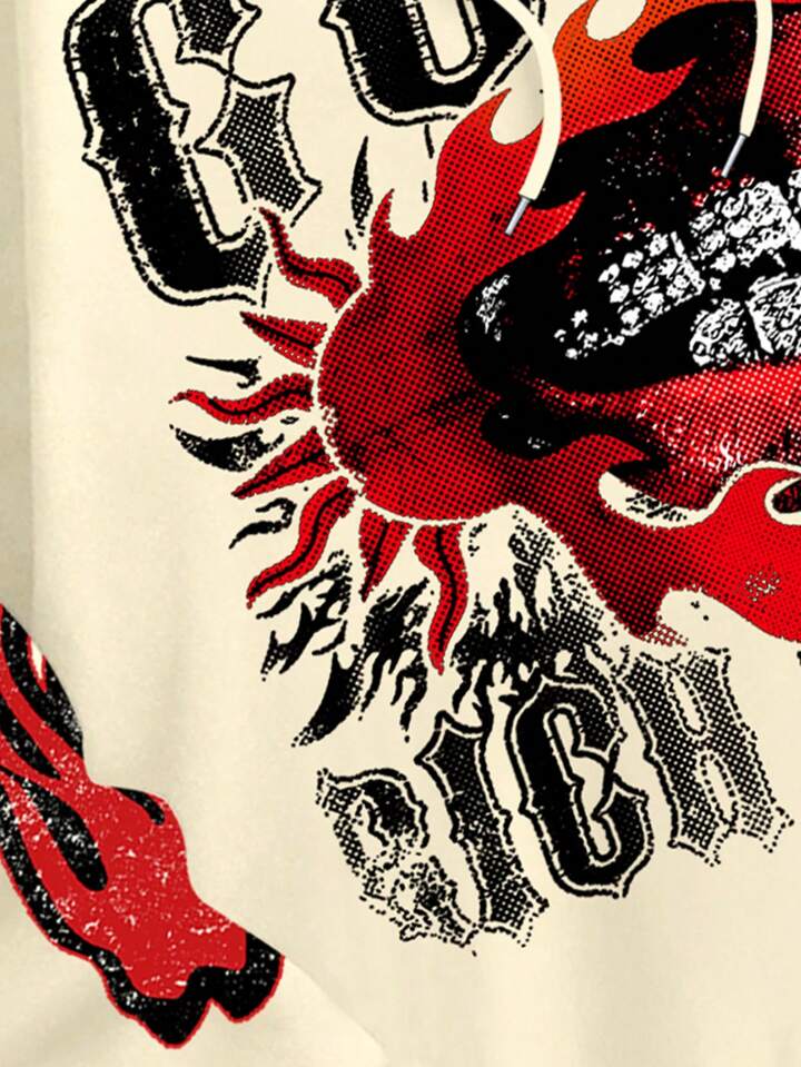 Street Life Men's Letter & Lip Print Hoodie Sweatshirt