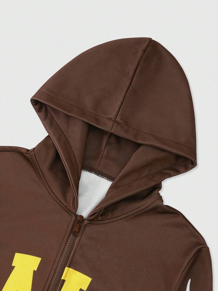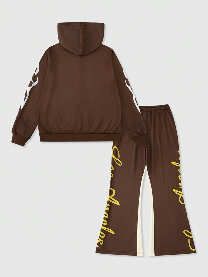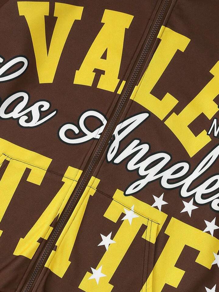 Street Life Men's Letter Print Zip Front Hoodie And Sweatpants Casual 2 Pieces Set, Autumn/Winter