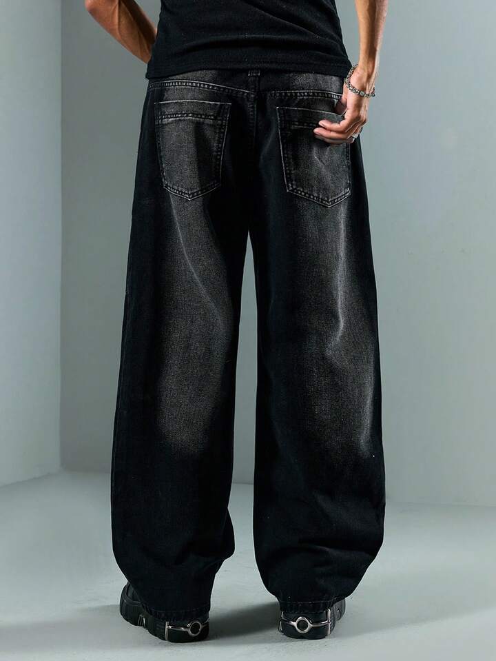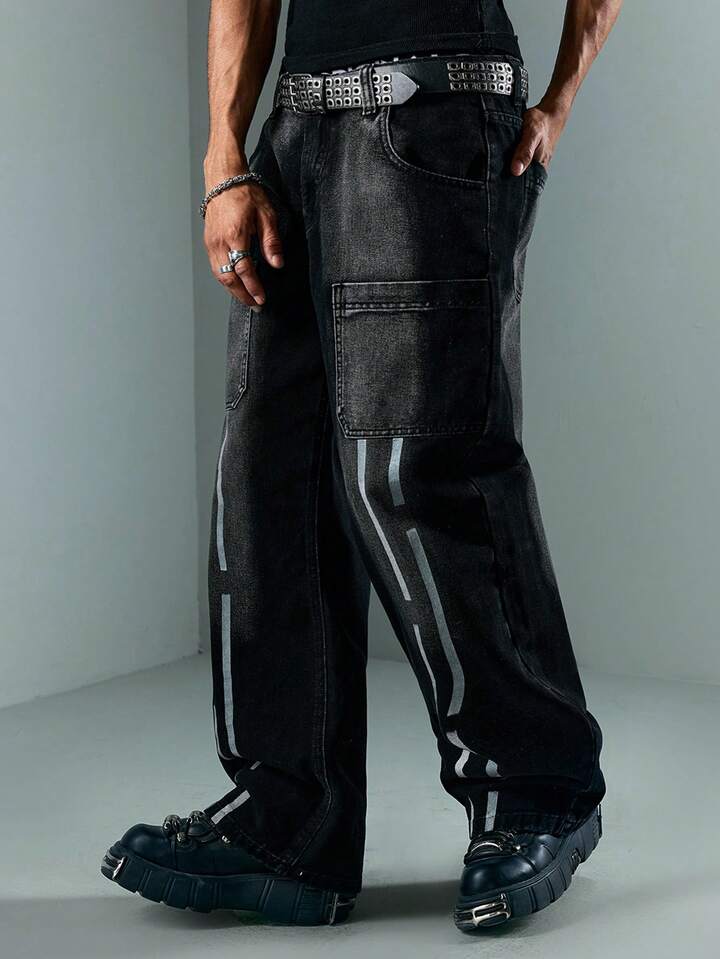 Street Life Men's Loose Fit Casual Striped Wide Leg Jeans With Dual Pockets