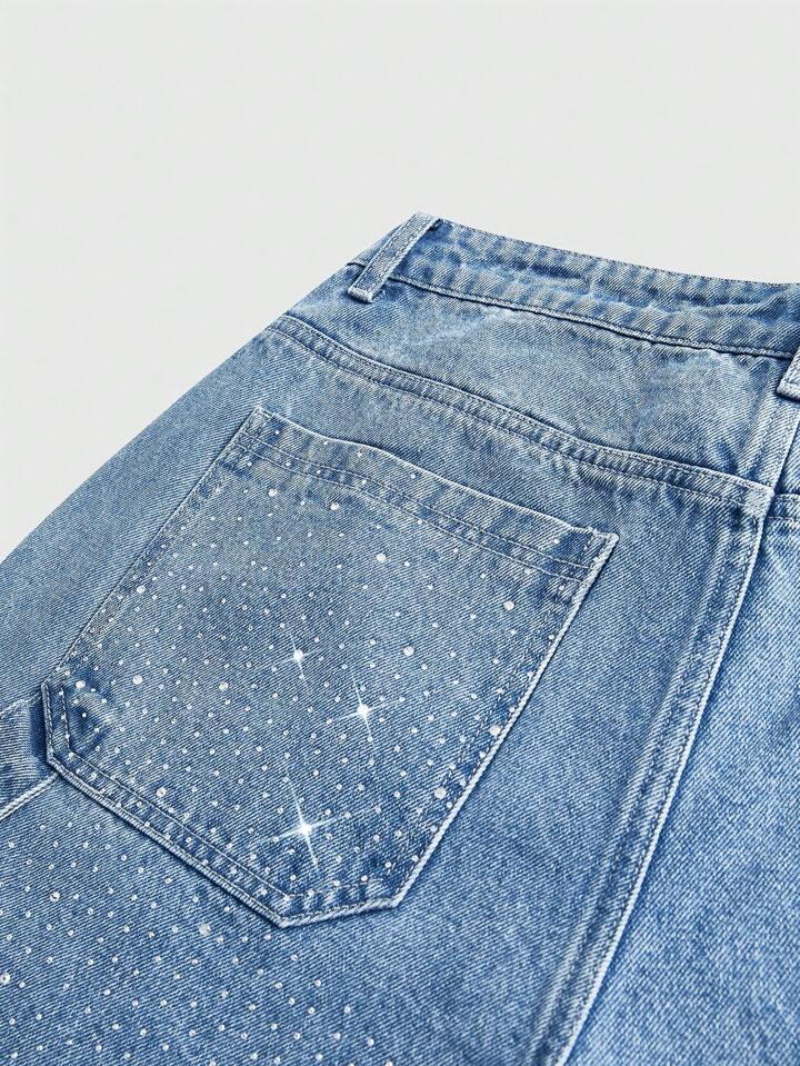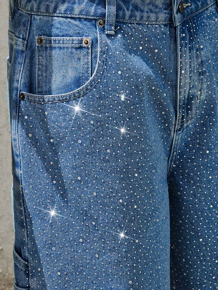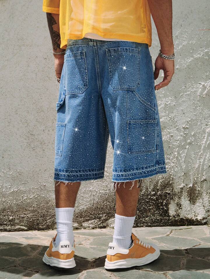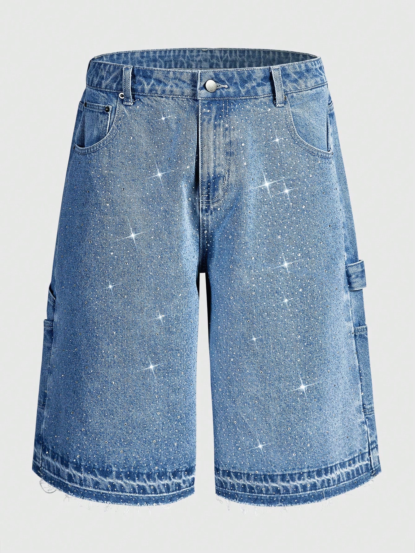 Street Life Men's Loose Fit Diamond Embellished Denim Shorts
