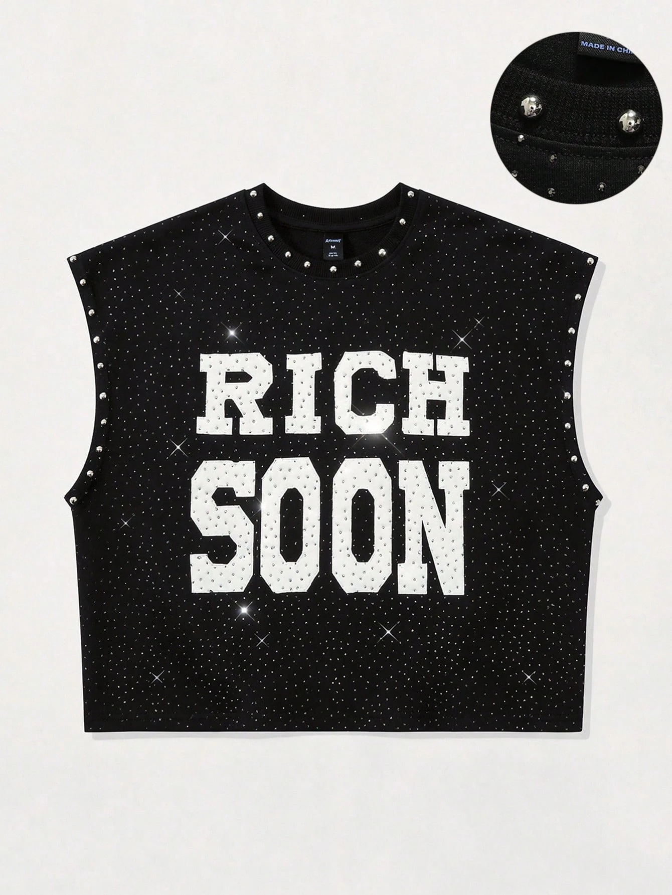 Street Life Men's Loose Fit Embroidered Rhinestone Rivet Decorated Tank Top