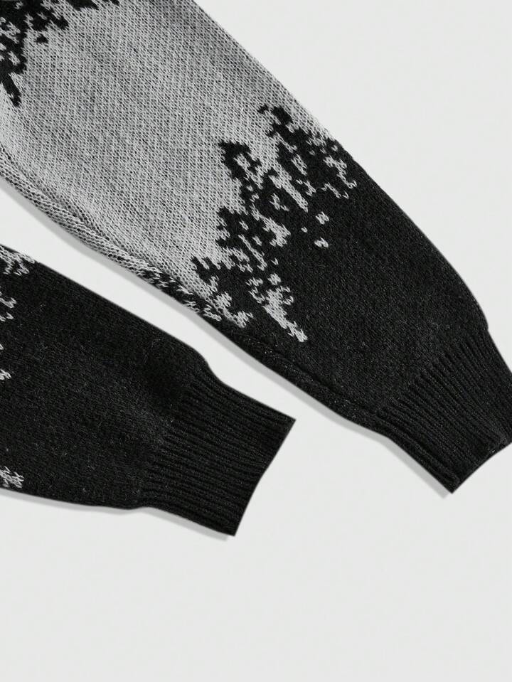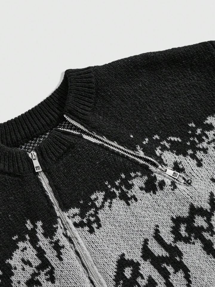 Street Life Men's Metal Zipper Letter Jacquard Knit Cardigan Pullover Sweater