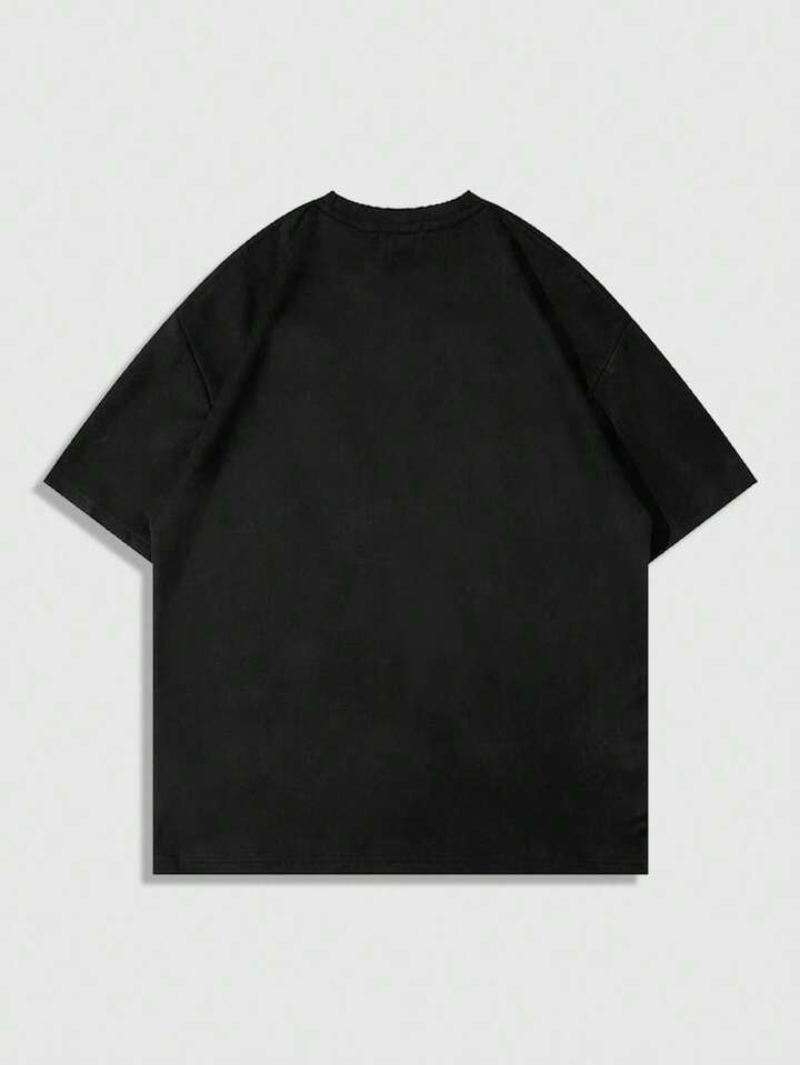 Street Life Men's Oversized Trash Punk Short Graphic T-Shirt & Shorts Set, Vintage Streetwear Style