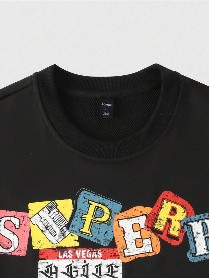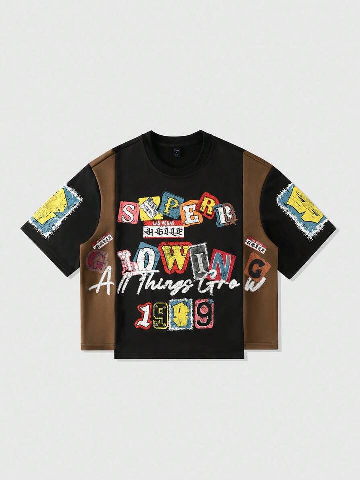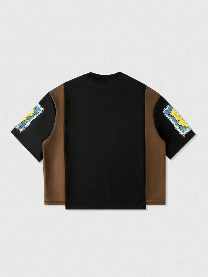 Street Life Men's Patchwork Print T-Shirt, Loose Cropped Streetwear Retro Style