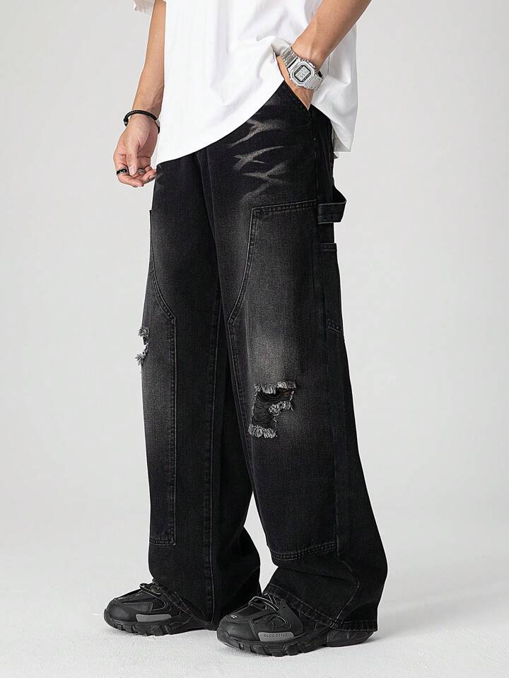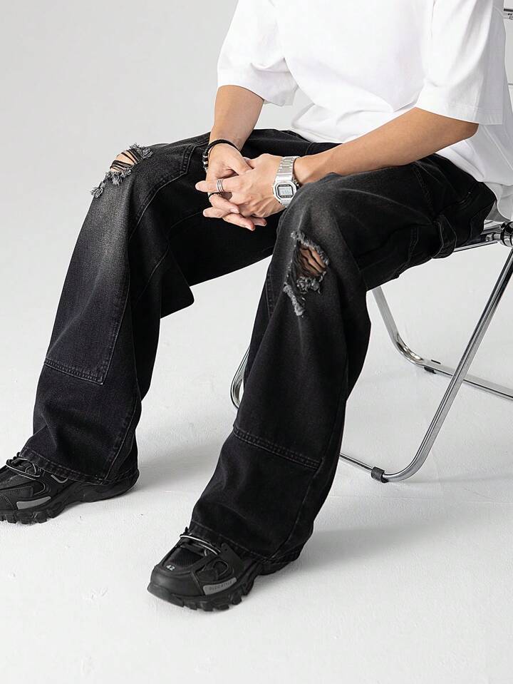Street Life Men's Patchwork Ripped Jeans Trousers, Suitable For All Seasons