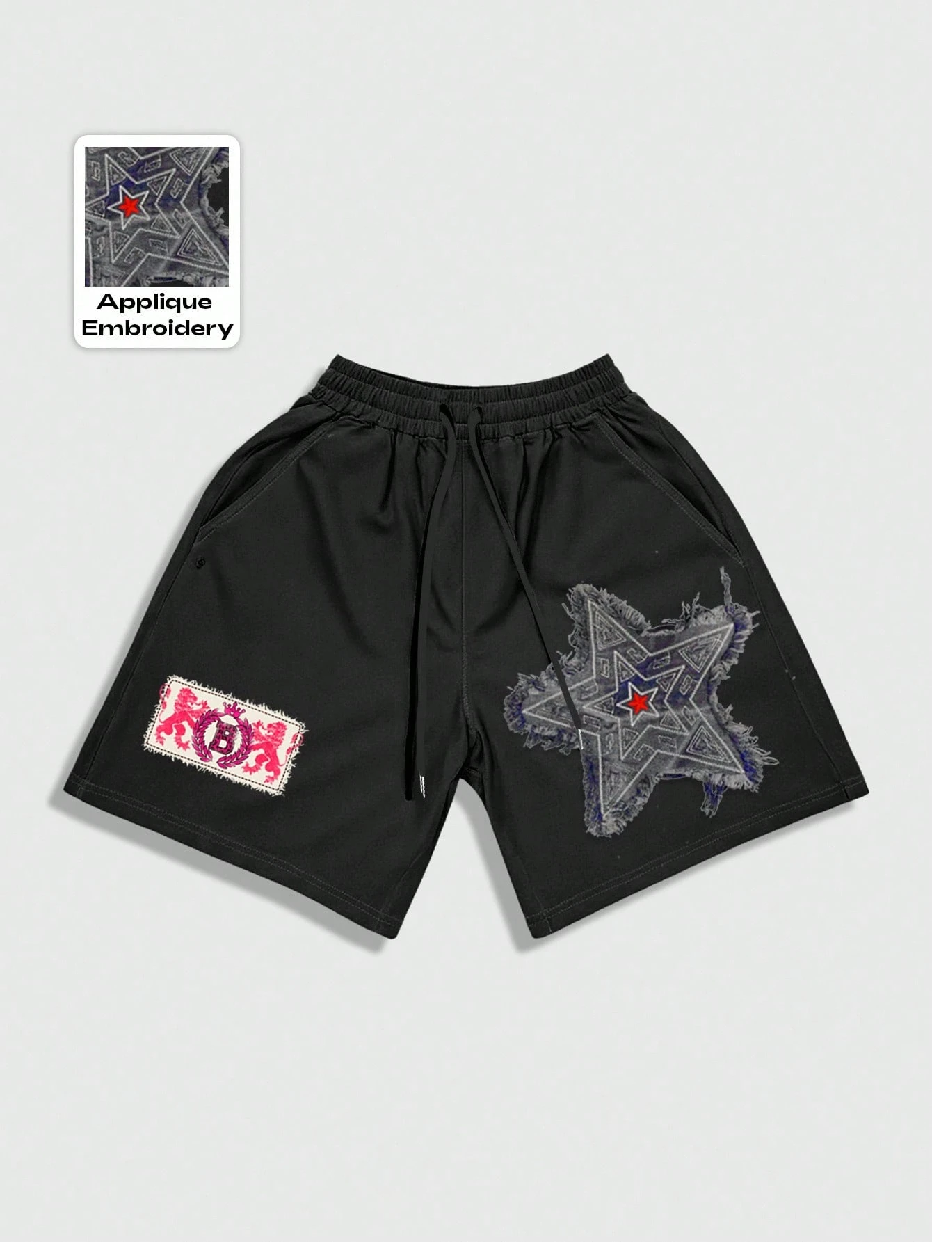 Street Life Men's Pentagram Print Drawstring Waist Shorts, Suitable For Everyday Wear, Spring/Summer