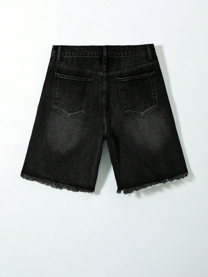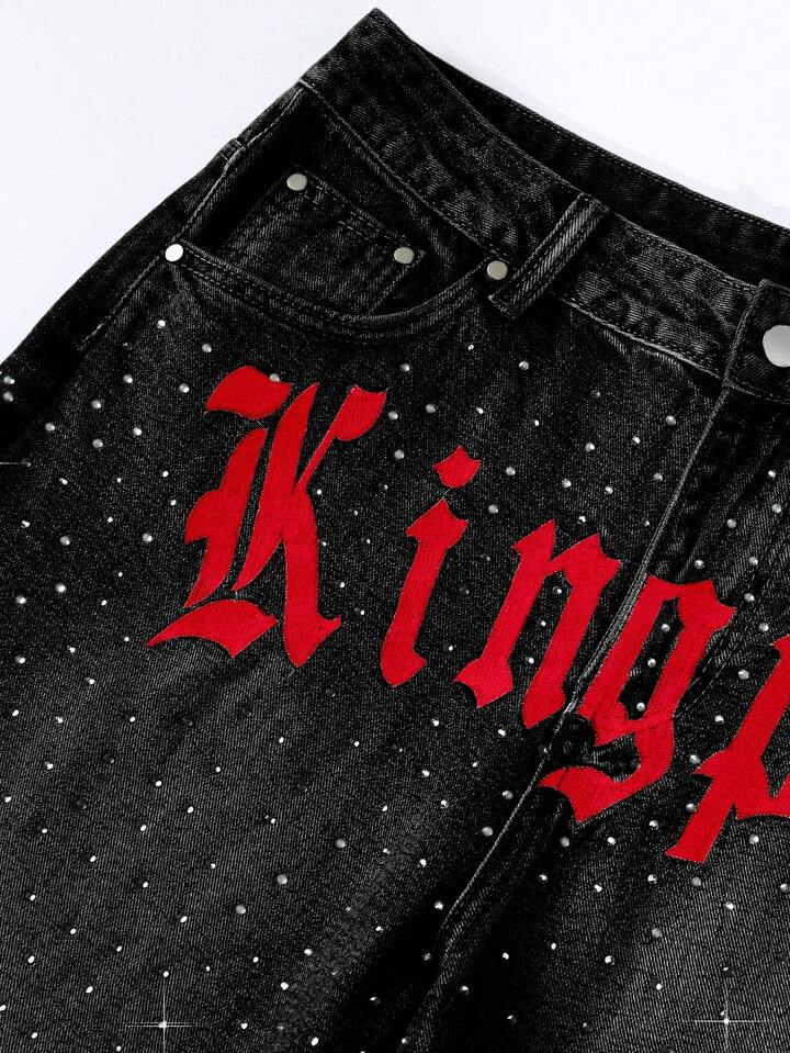 Street Life Men's Pocket Rhinestone Letter Print Frayed Hem Casual Denim Shorts