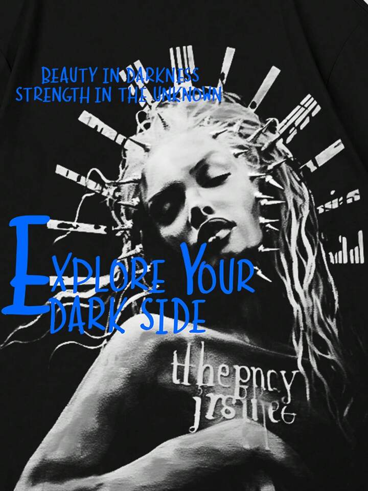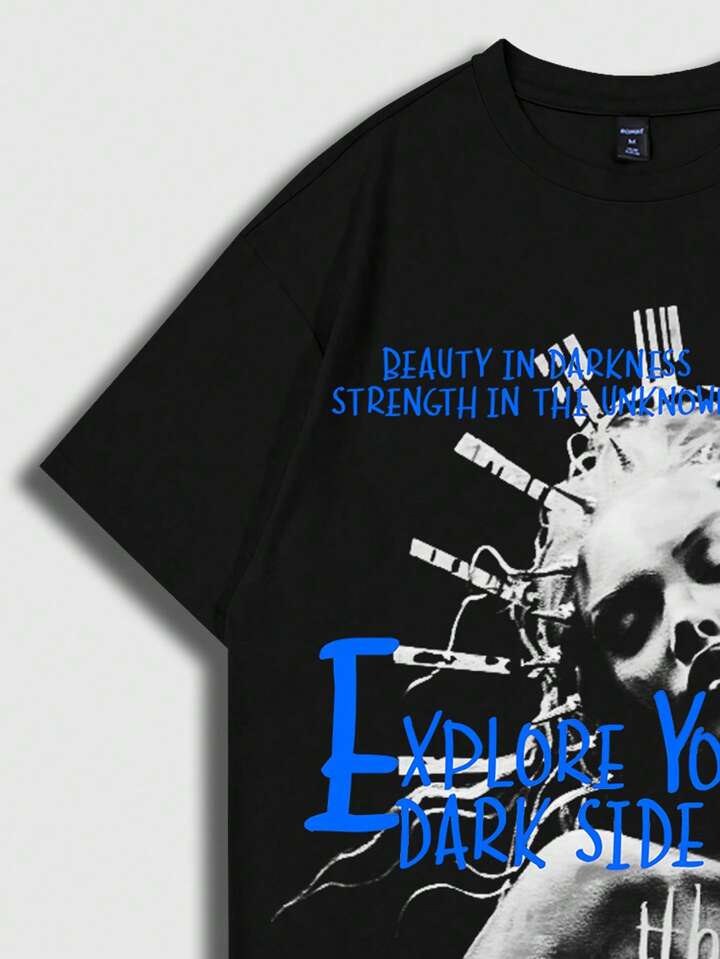 Street Life Men's Portrait Print Round Neck Short Sleeve T-Shirt, Perfect For Daily Wear In Spring And Summer, School