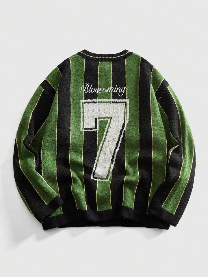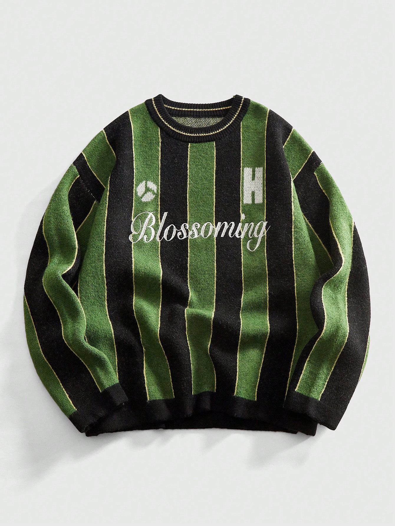 Street Life Men's Preppy Round Neck Embroidered Knit Sweater, Street Fashion