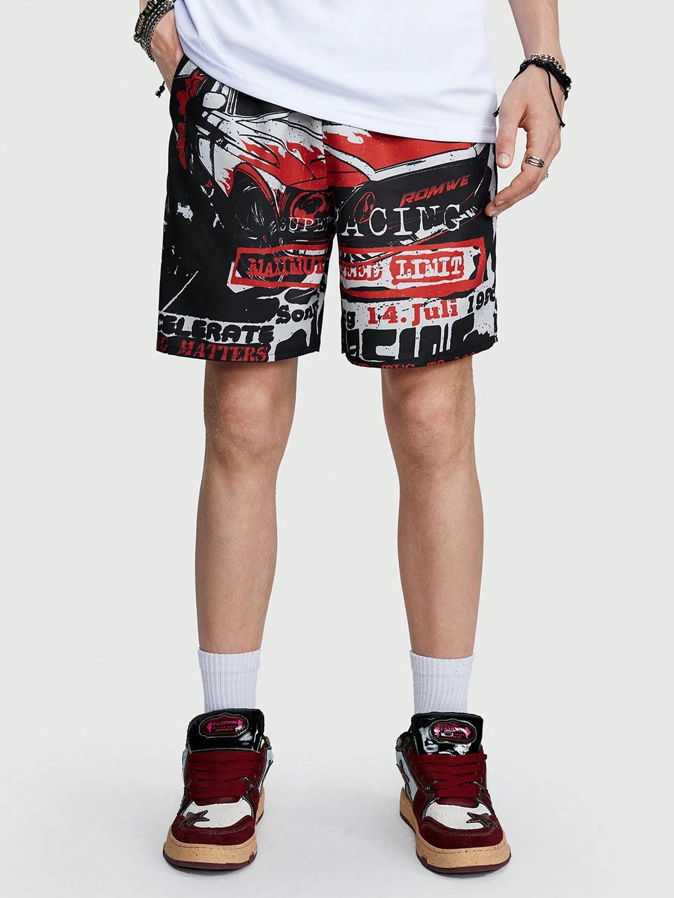 Street Life Men's Racing Letter Printed Shorts, Suitable For Summer