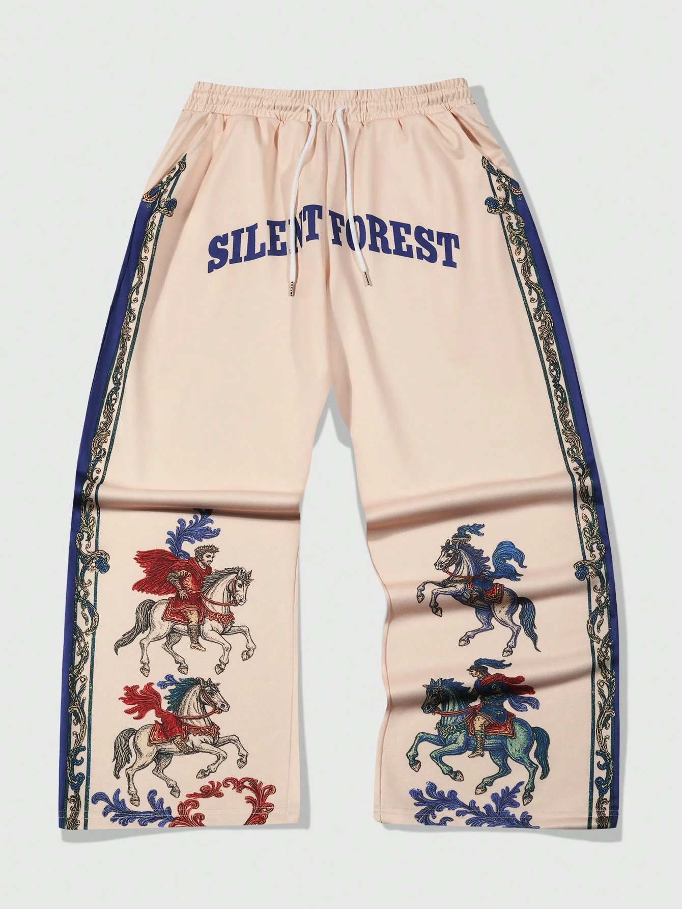 Street Life Men's Retro Knight Print Straight Leg Pants