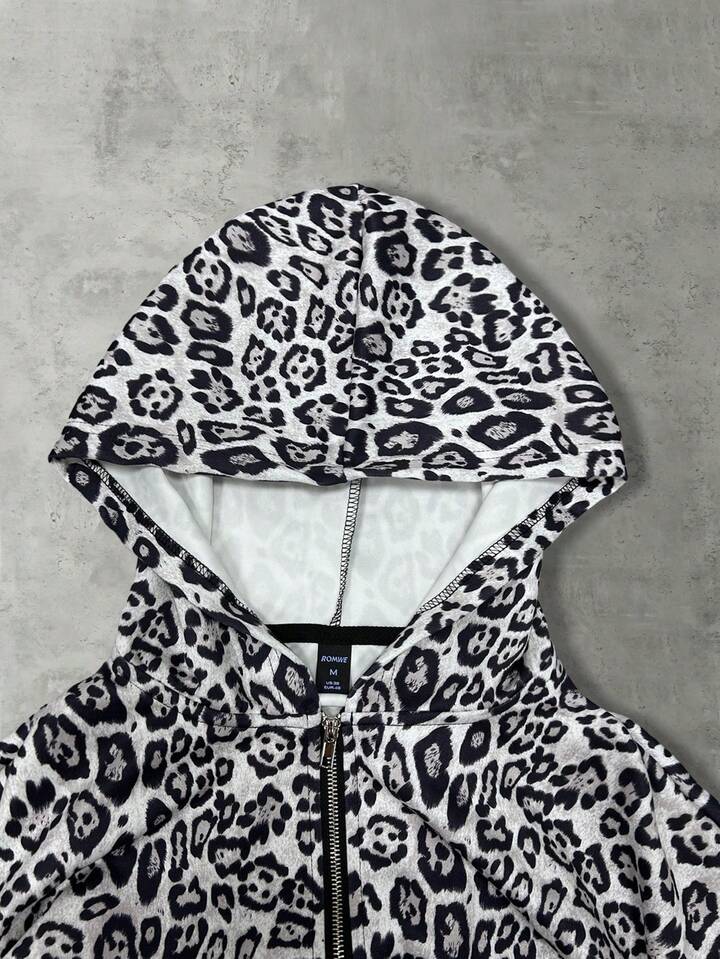 Street Life Men's Retro Leopard Print Sweatshirt Sweatshirt, Loose Cropped Style