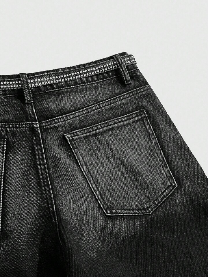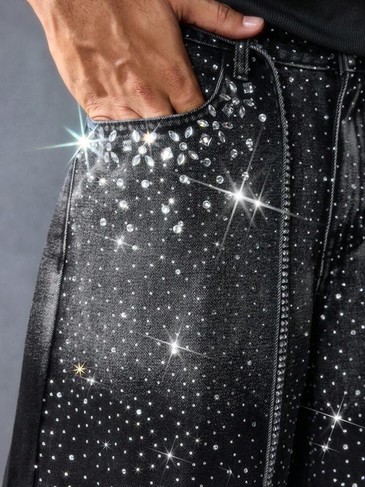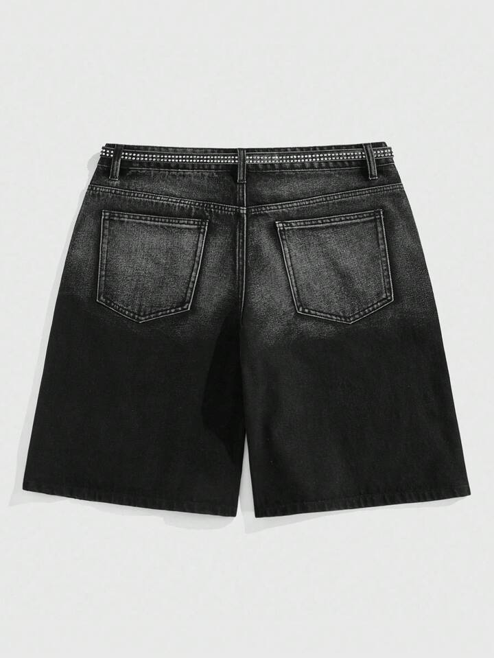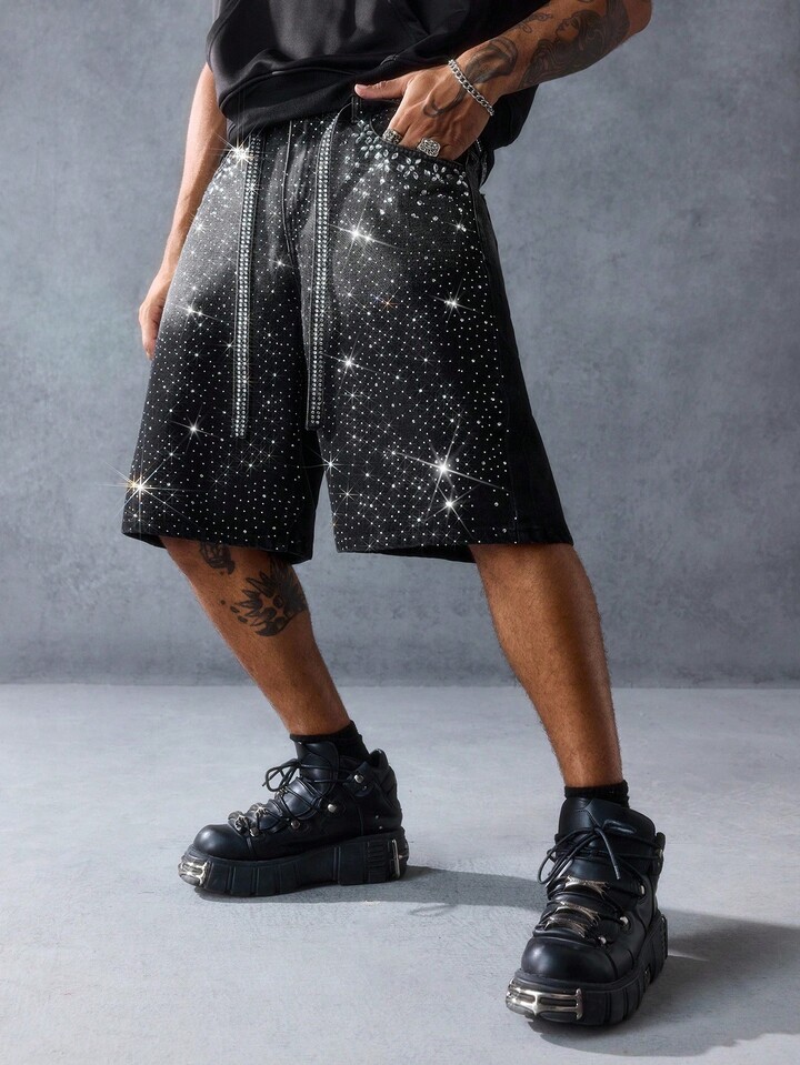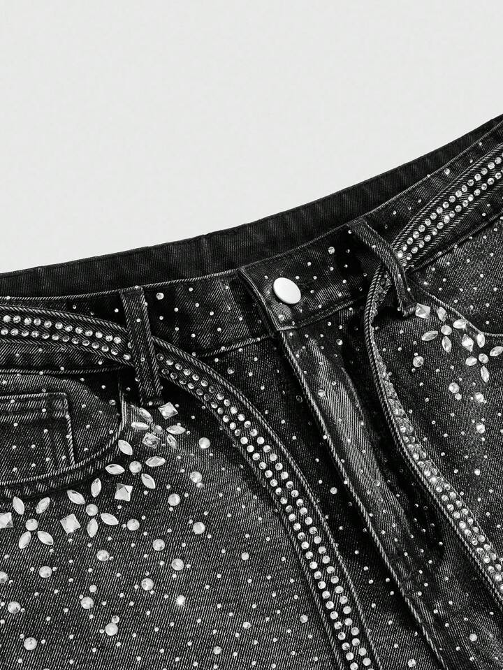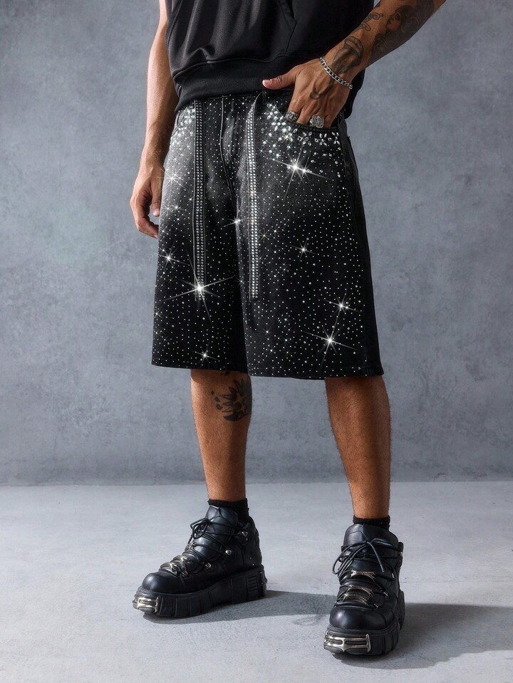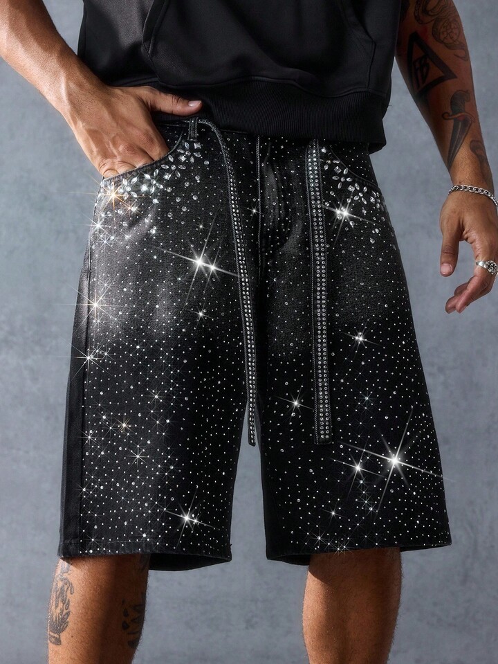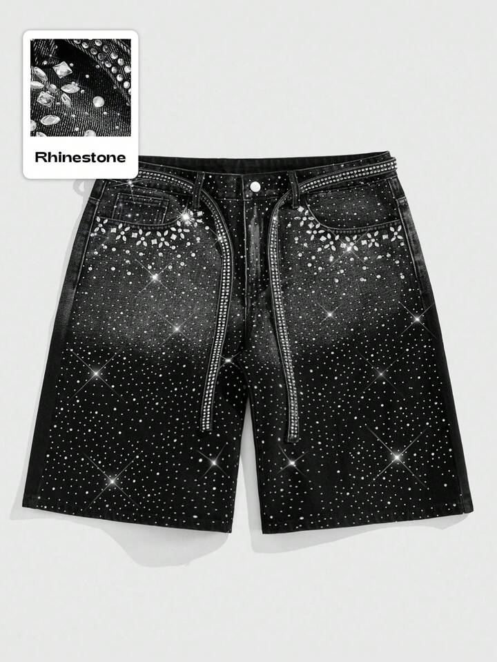 Street Life Men's Rhinestone Decor Belt Loop Pocket Fashion Denim Shorts