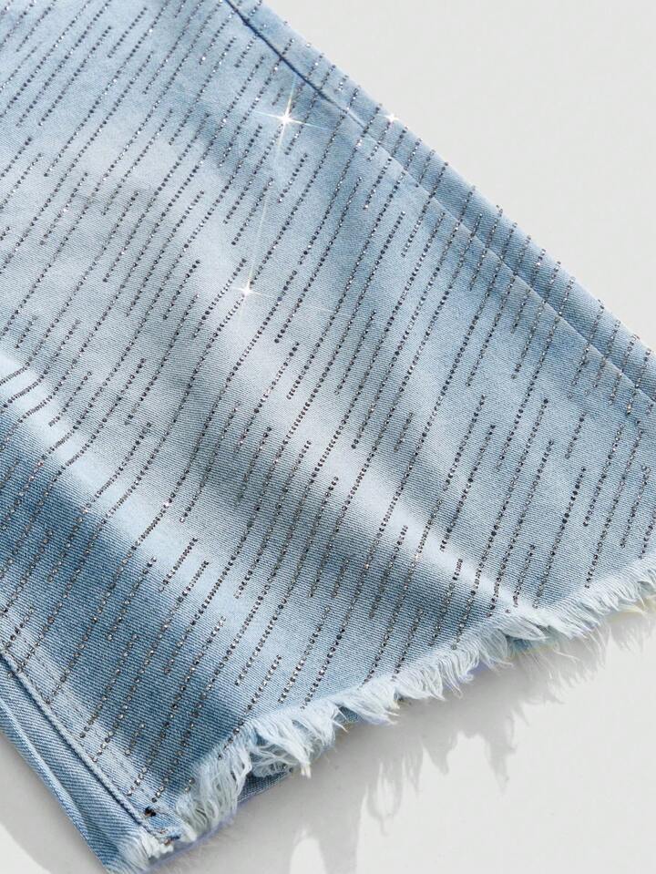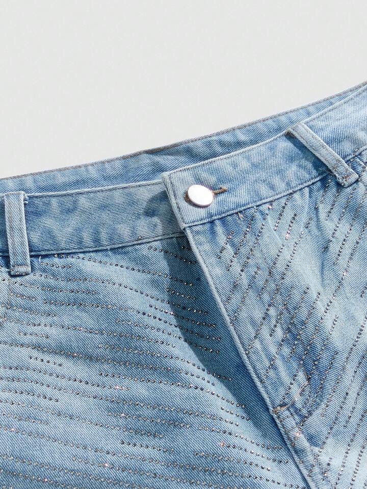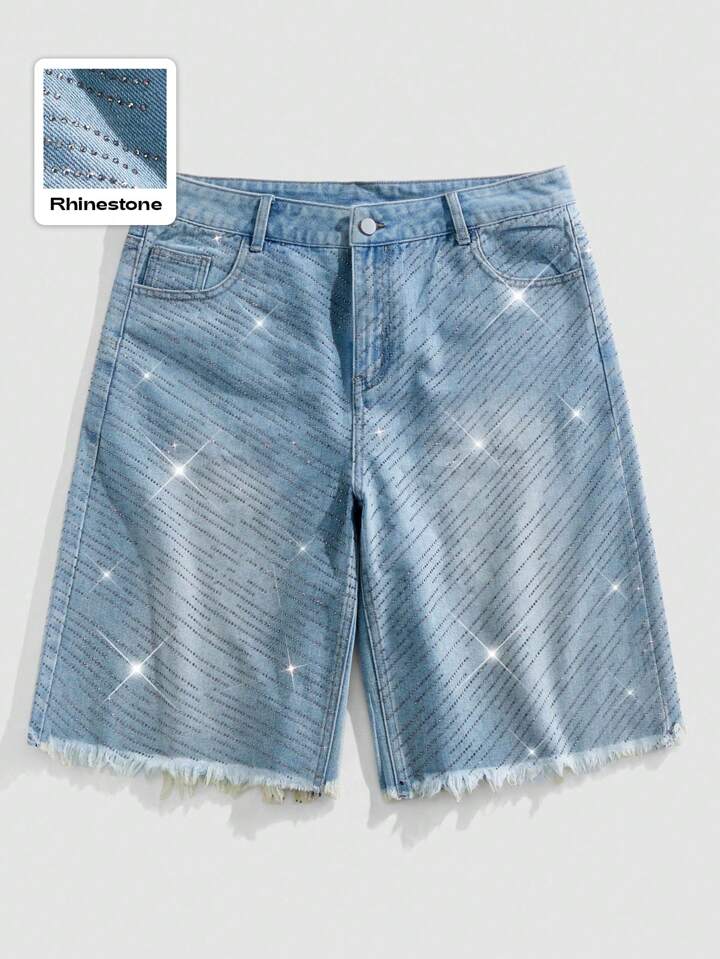 Street Life Men's Rhinestone Embellished Loose Denim Shorts