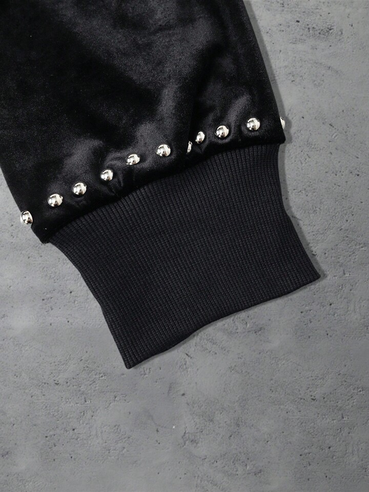 Street Life Men's Rivet Velvet Sweatshirt, Loose Short Style , Fall