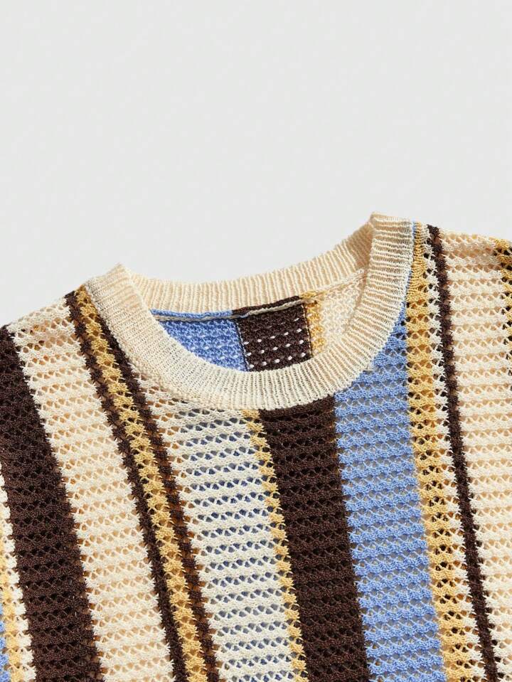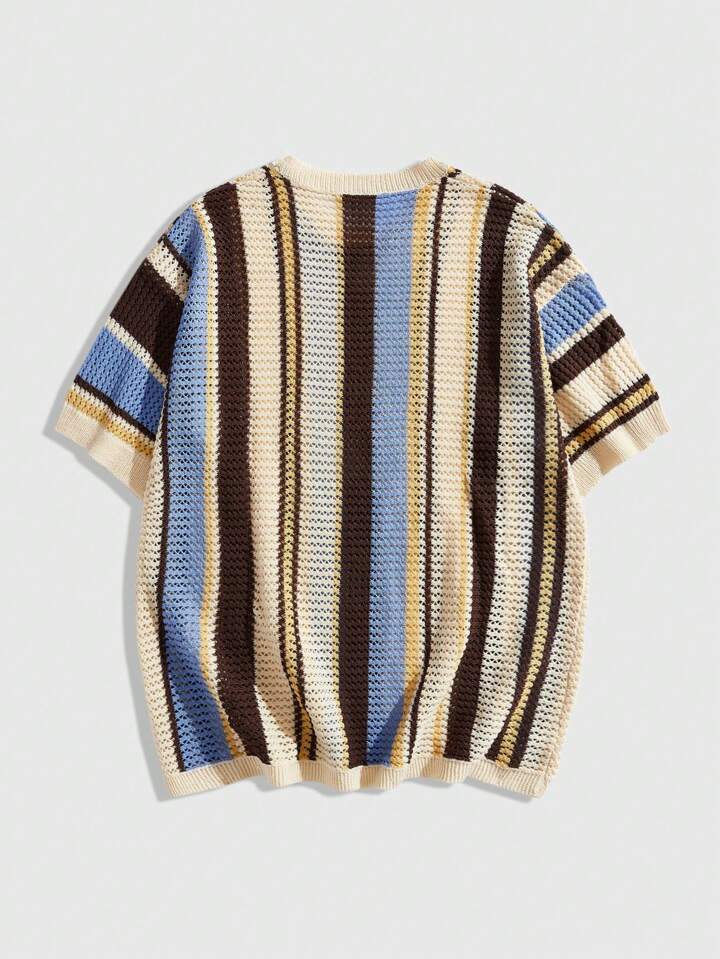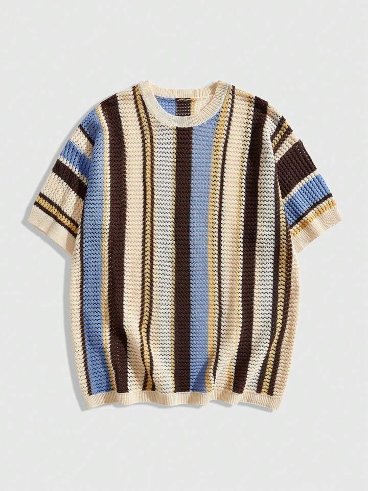 Street Life Men's Round Neck Short Sleeve Striped Casual Knit Top