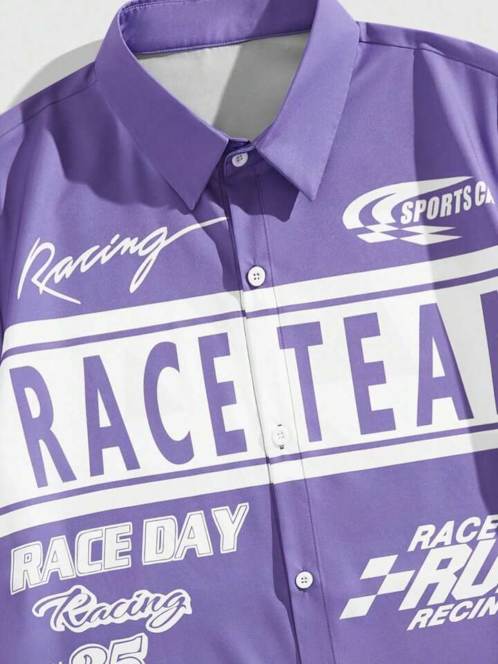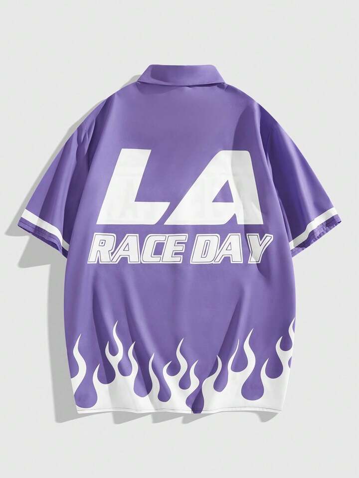 Street Life Men's Short Sleeve Casual Shirt With Letter Print, Summer