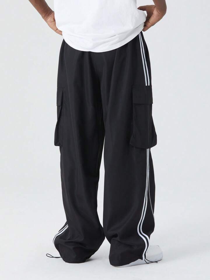 Street Life Men's Side Striped Print Pocket Drawstring Casual Loose Pants