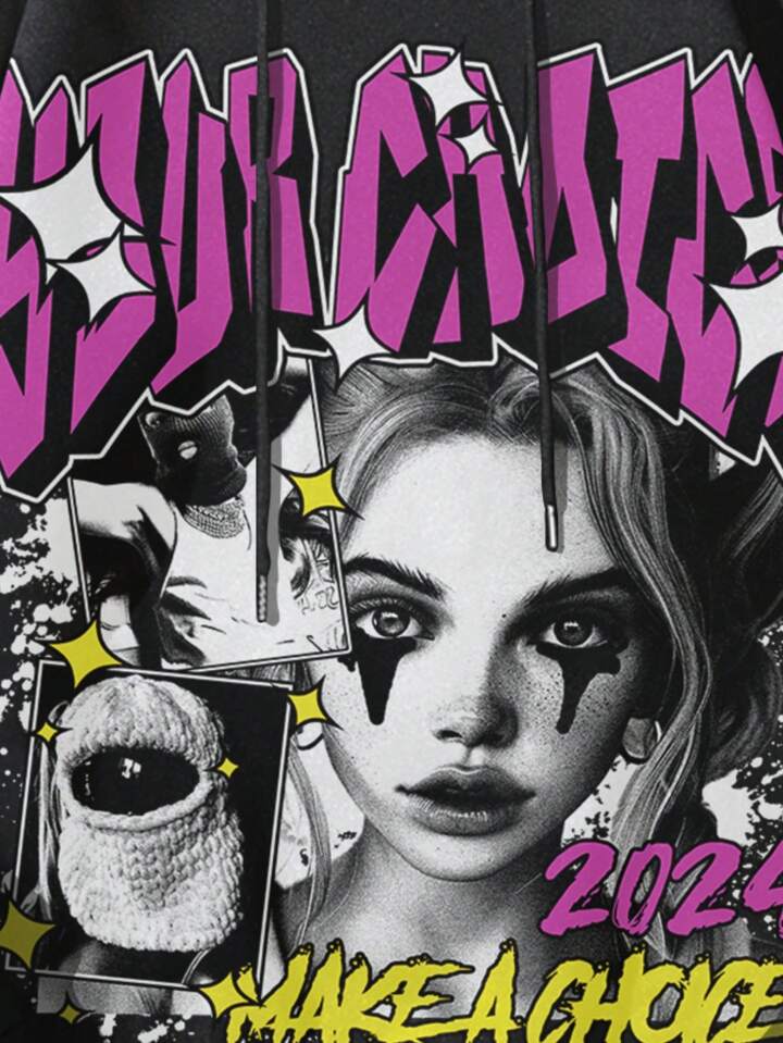 Street Life Men's Simple Figure & Letter Graphic Hooded Sweatshirt, School