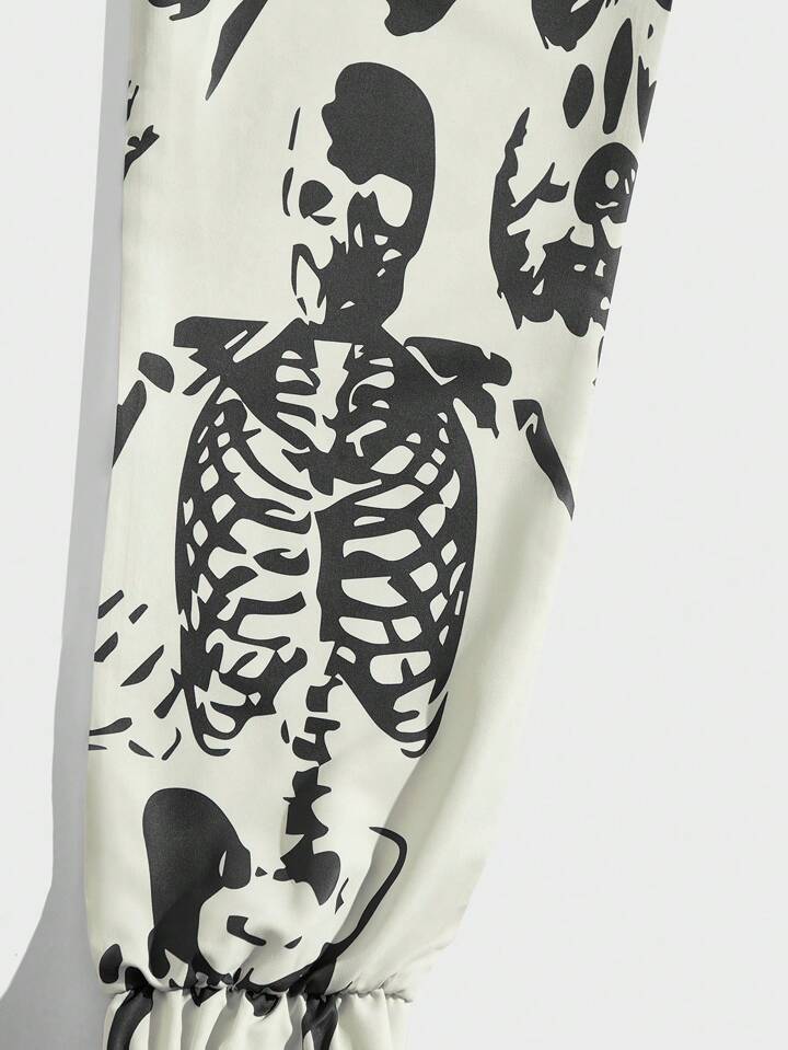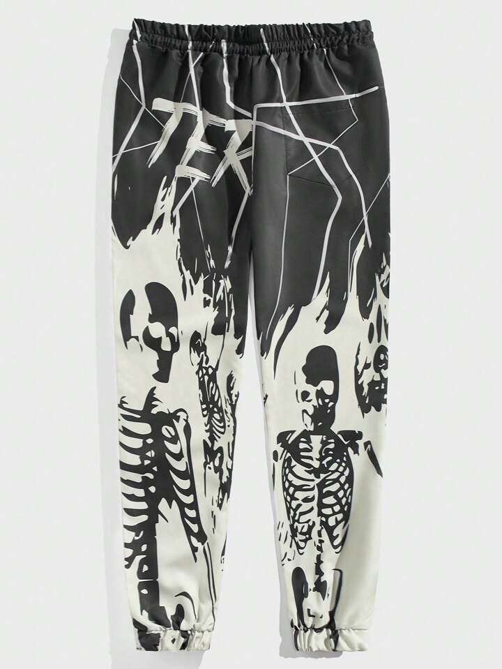 Street Life Men's Skull & Letter Printed Drawstring Waist Long Pants