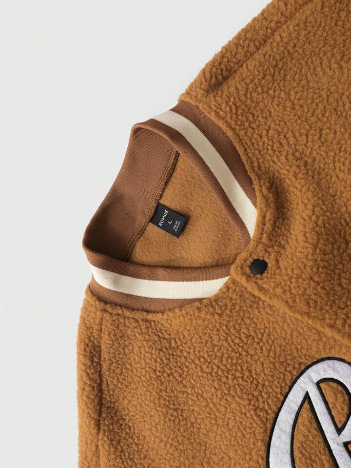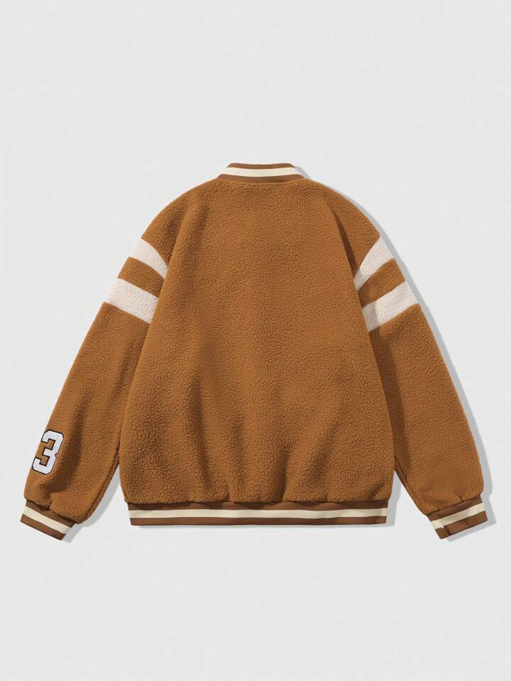 Street Life Men's Slogan Graphic Print Long Sleeve Sherpa Lined Fluffy Baseball Jacket, Autumn/Winter