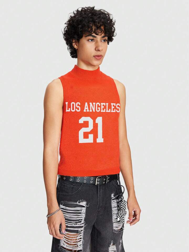 Street Life Men's Slogan Jacquard Vest, Daily Wear For Spring And Summer