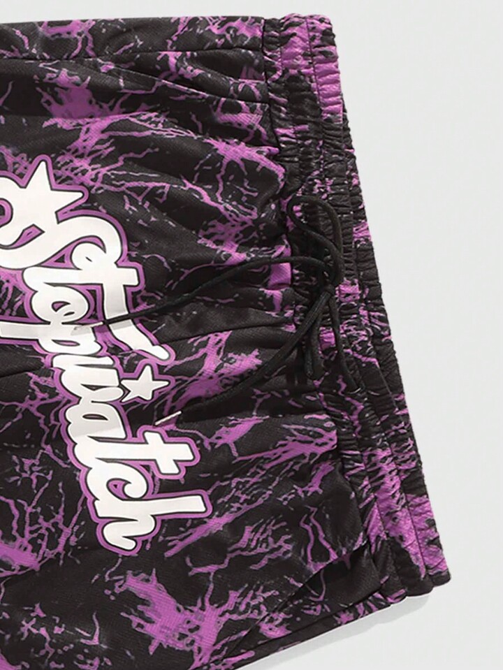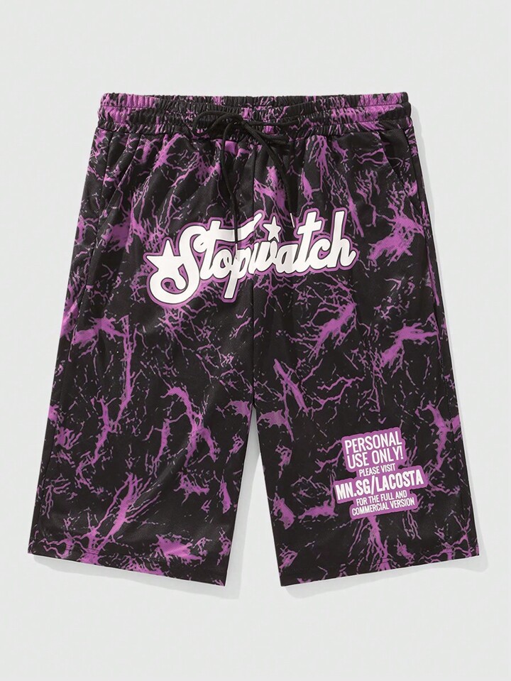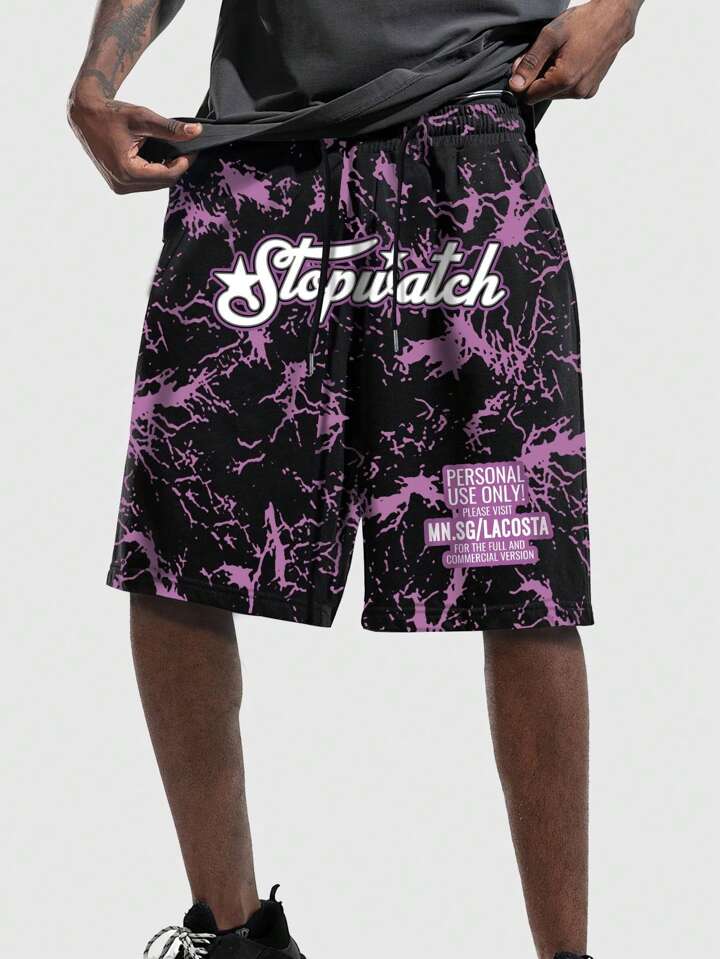 Street Life Men's Slogan Printed Knee-Length Shorts Suitable For Spring And Summer, Daily Wear