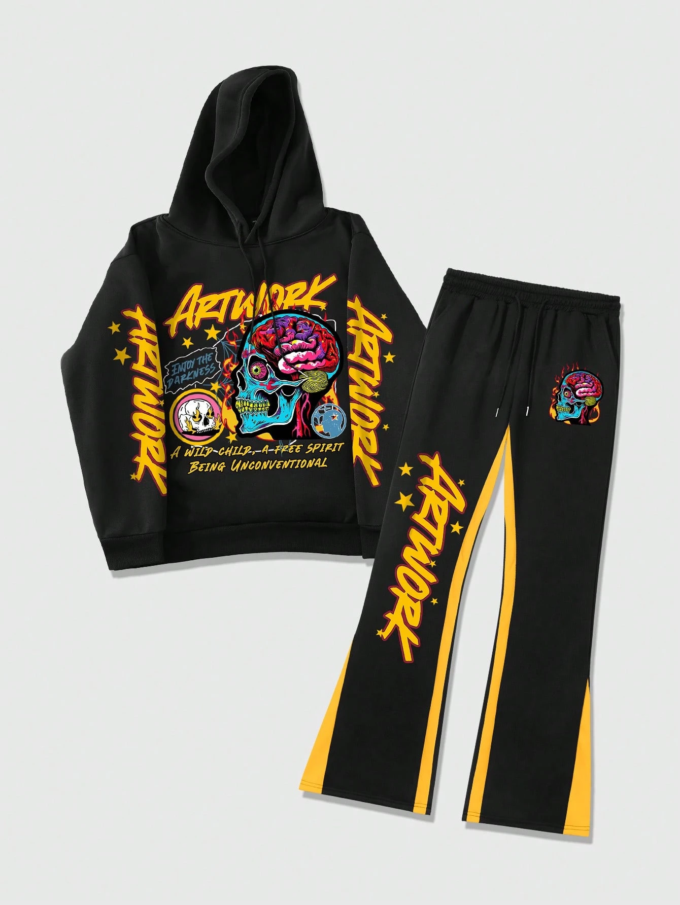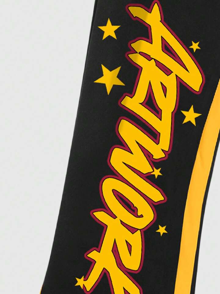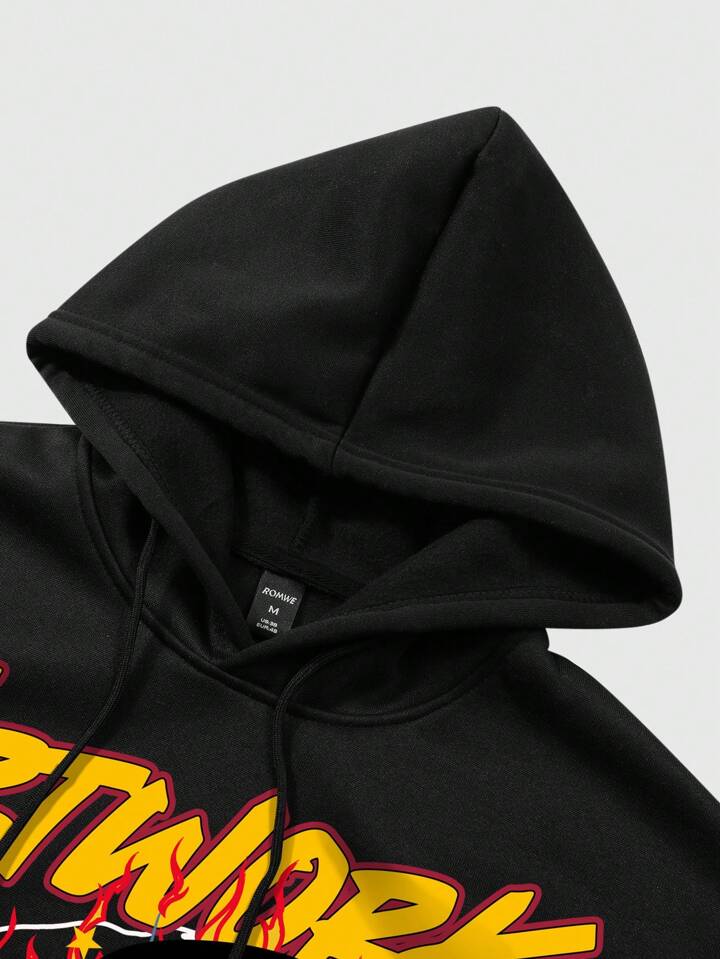 Street Life Men's Slogan & Skeleton Print Hoodie And Sweatpants Set, Street Style For Autumn/Winter, Halloween