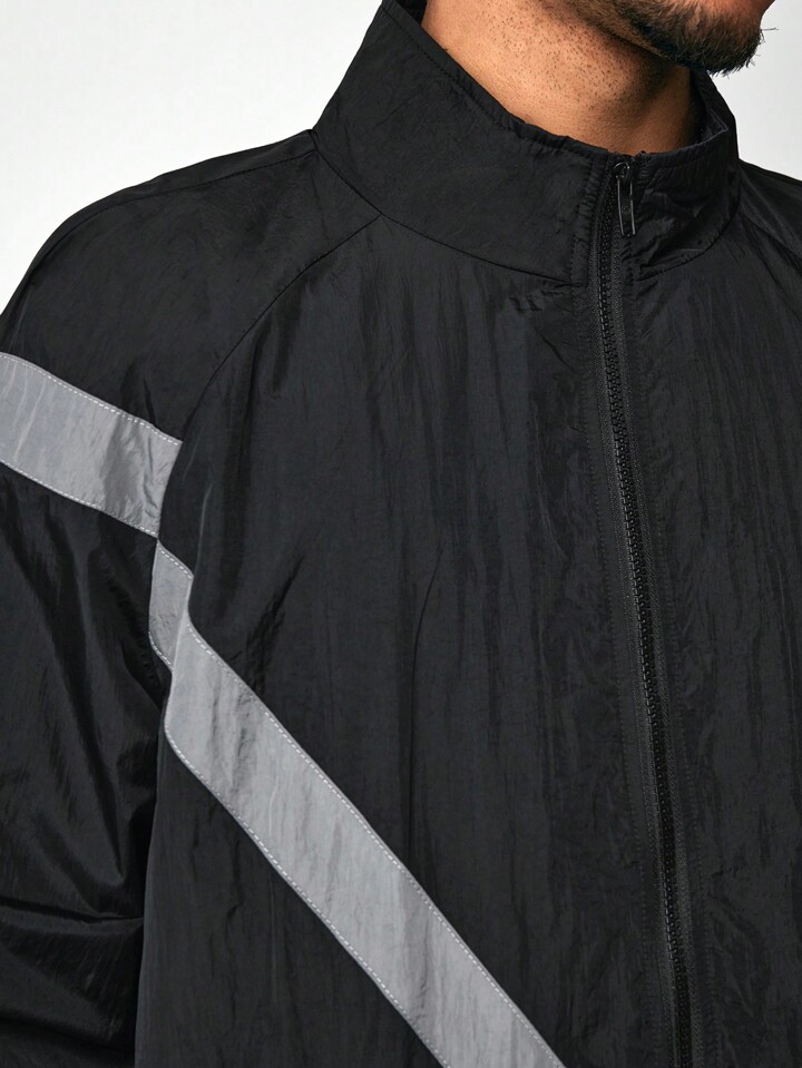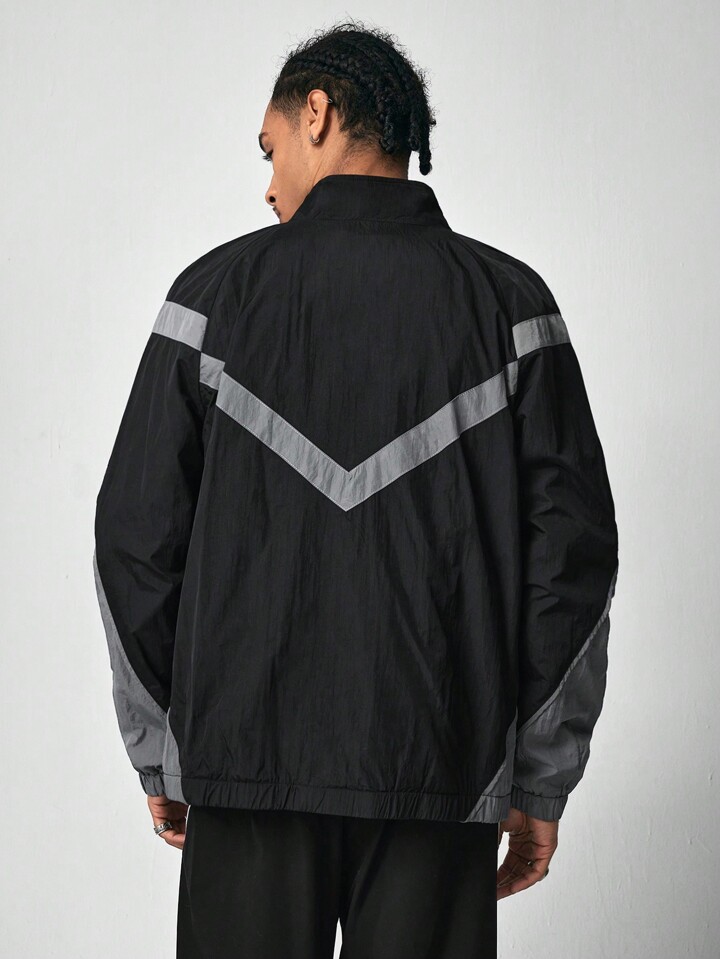 Street Life Men's Solid Color Patchwork Front Zipper Pocket Simple Casual Jacket