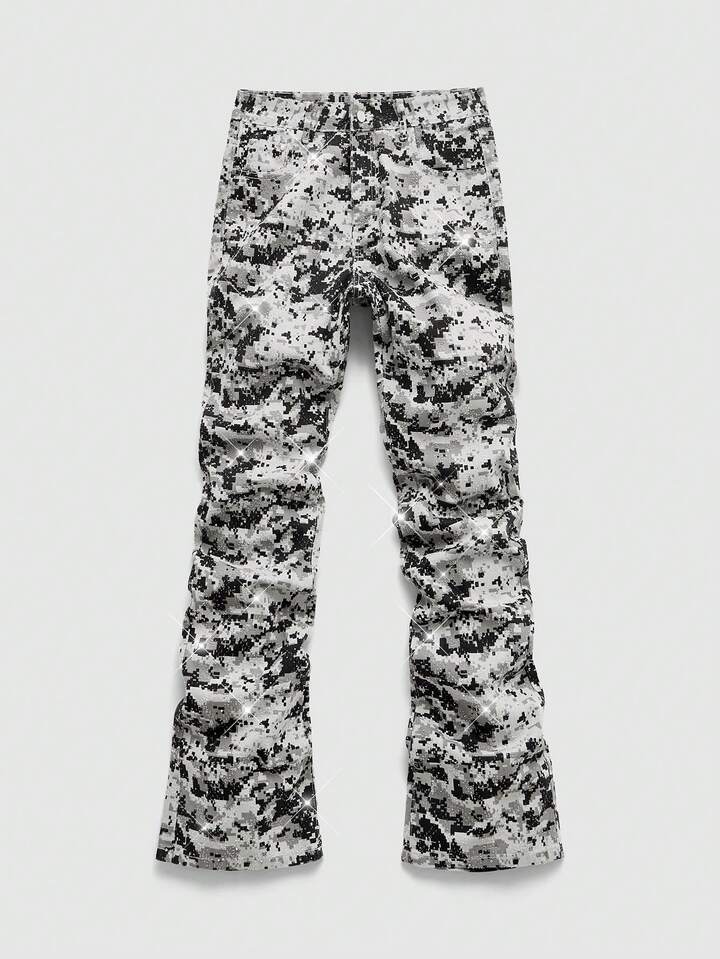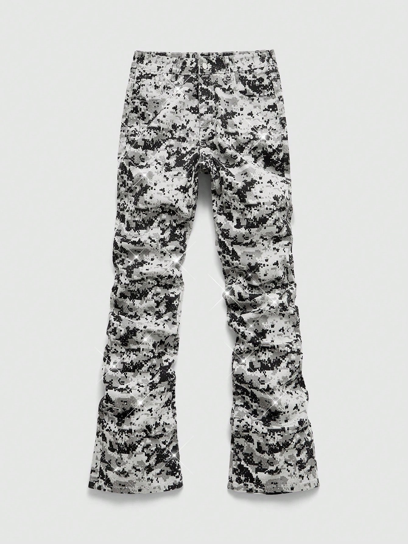 Street Life Men's Sparkling Diamond Layered Flare Camouflage Jeans