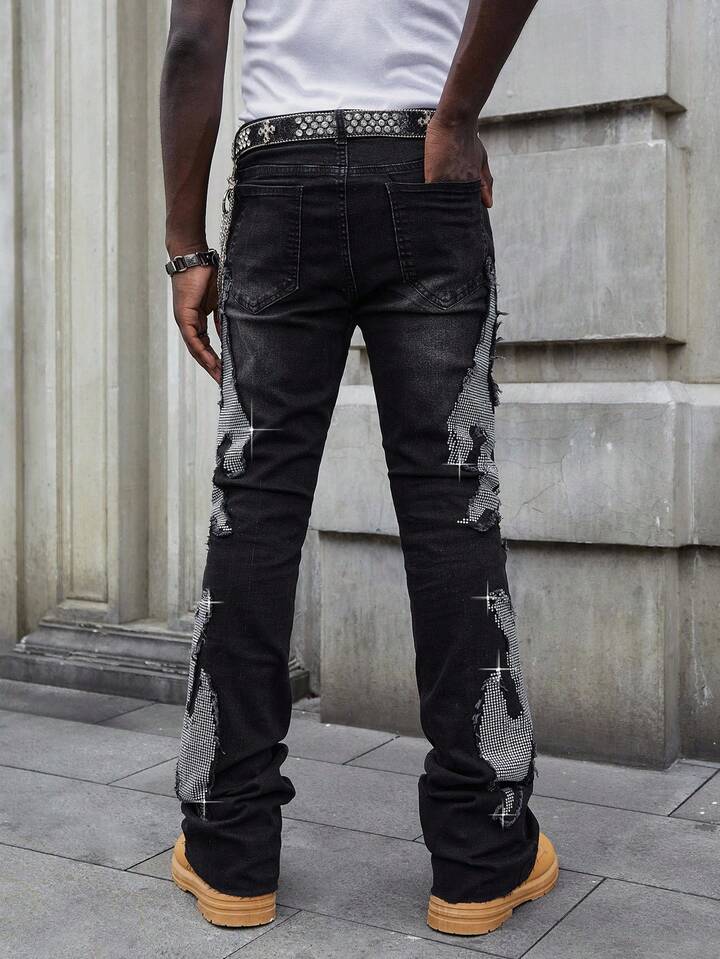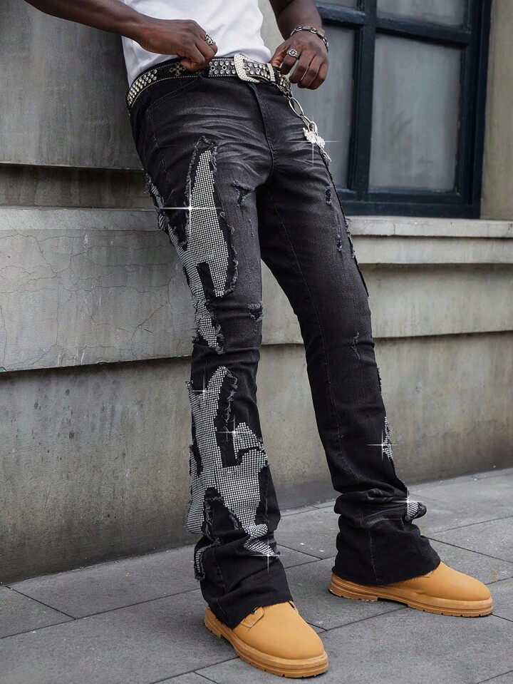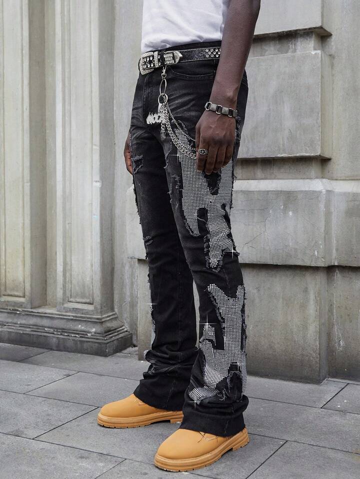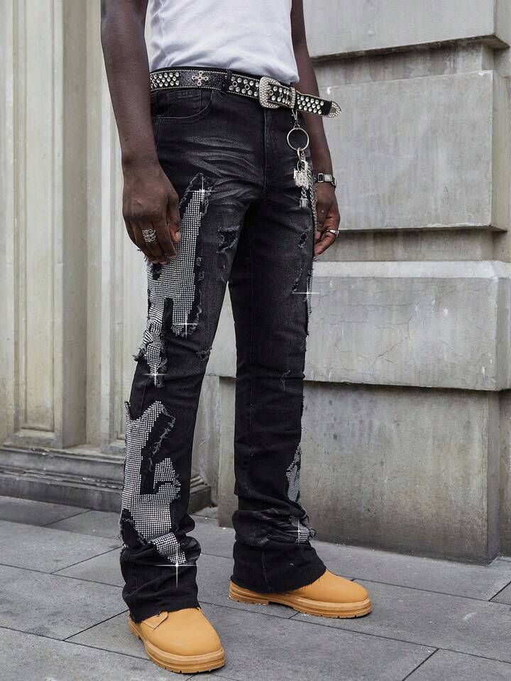Street Life Men's Sparkling Diamond Layered Flare Jeans