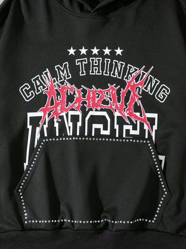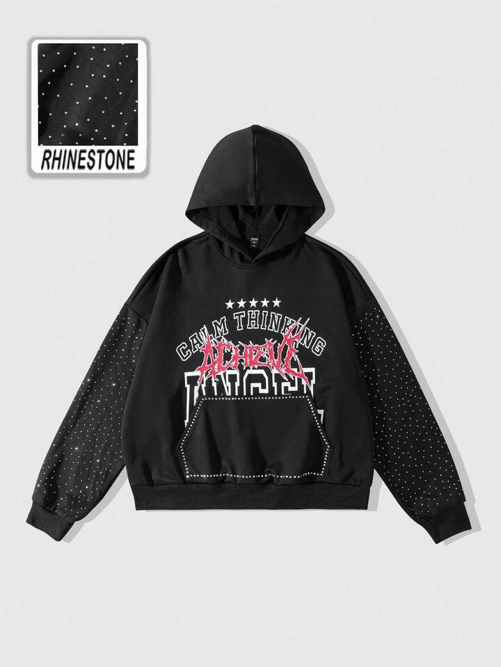 Street Life Men's Sparkling Diamond Print Hoodie, Loose Cropped Style