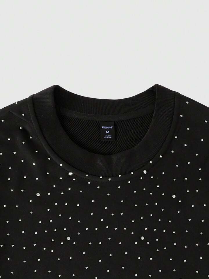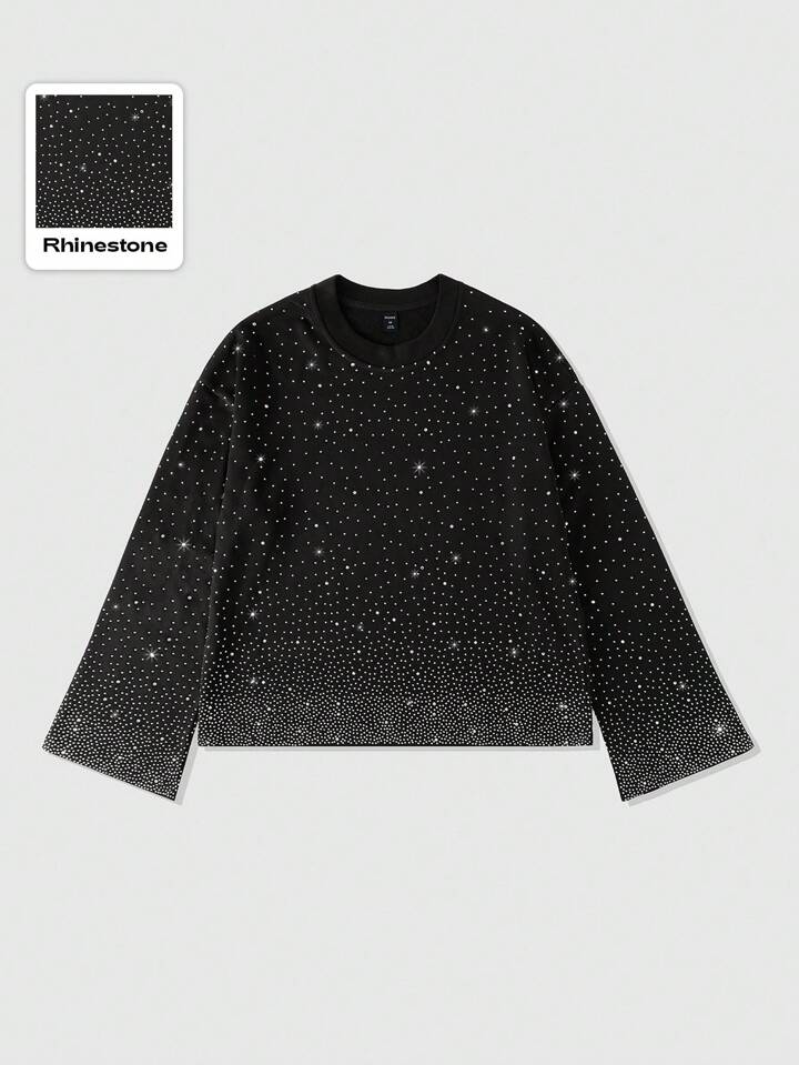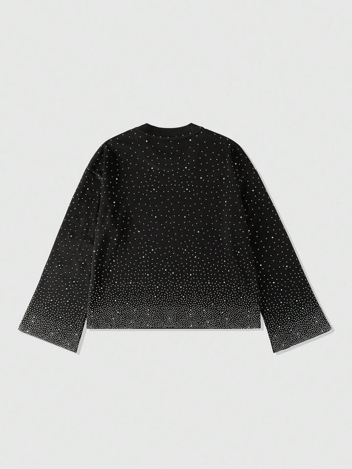 Street Life Men's Sparkling Diamond Print Long Sleeve T-Shirt, Loose Cropped Style