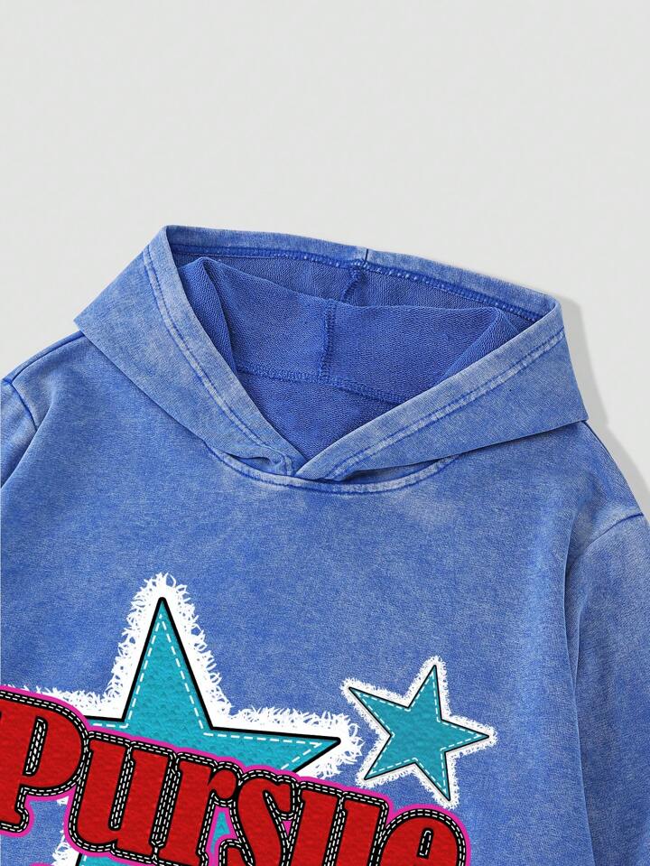 Street Life Men's Star And Letter Print Washed Hooded Sweatshirt, Casual For Autumn