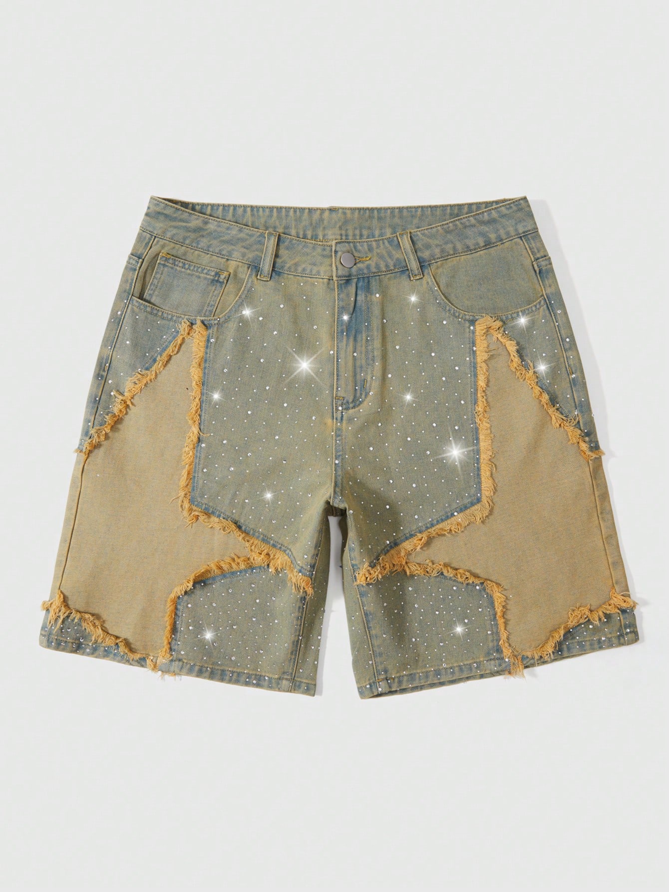 Street Life Men's Star Distressed Pocket Rhinestone Decor Casual Jean Shorts