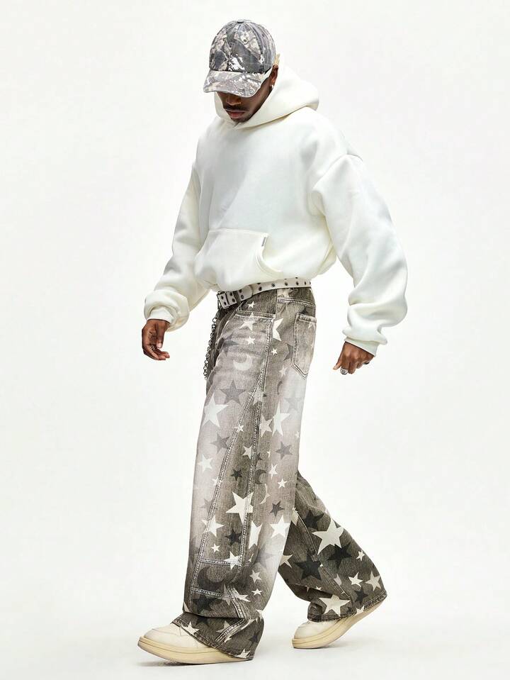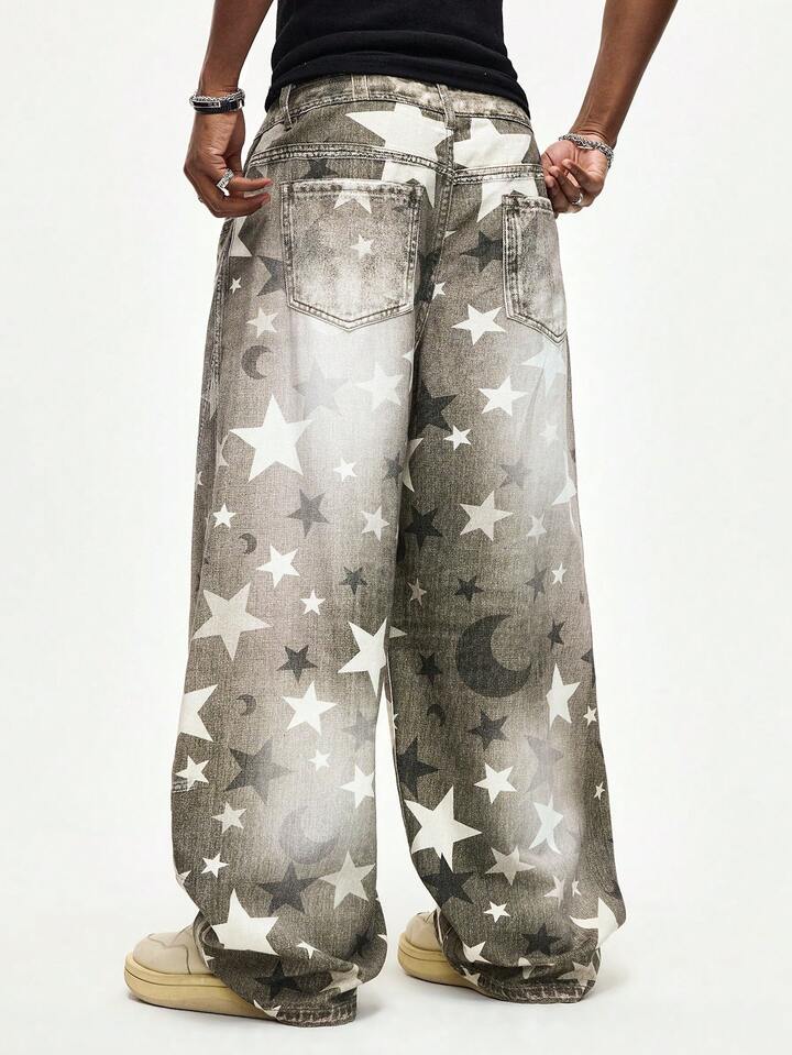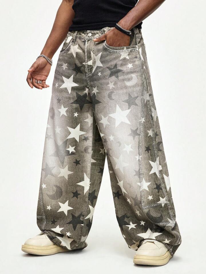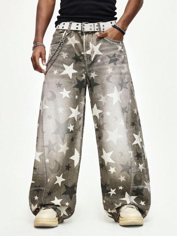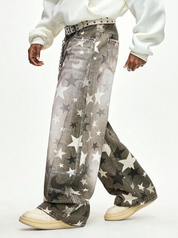 Street Life Men's Star Print Distressed Straight Leg Jeans