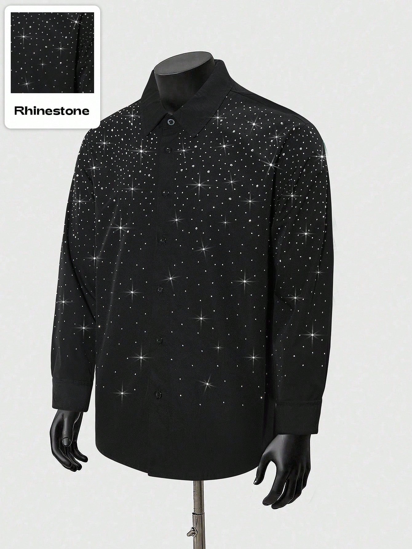 Street Life Men's Street American Design Rhinestone Decor Long Sleeve Shirt, Fall