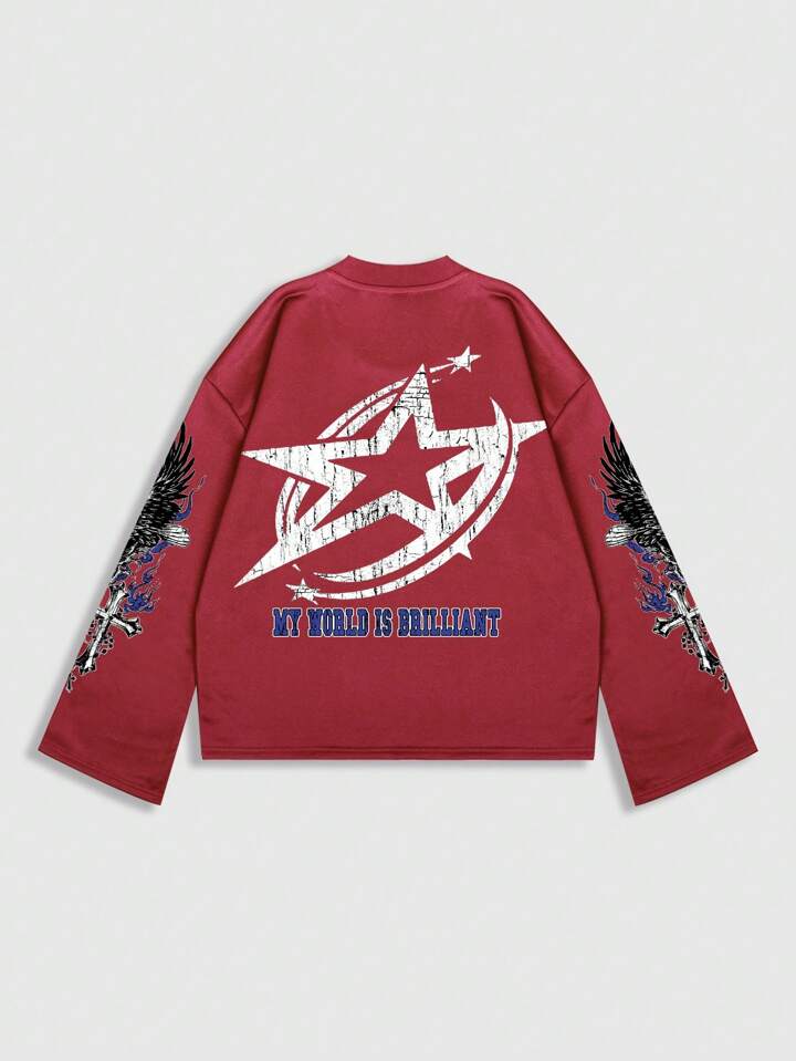 Street Life Men's Street Graphic Print Pullover Sweatshirt, Suitable For Everyday Casual Wear, Spring/Summer