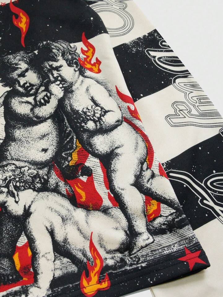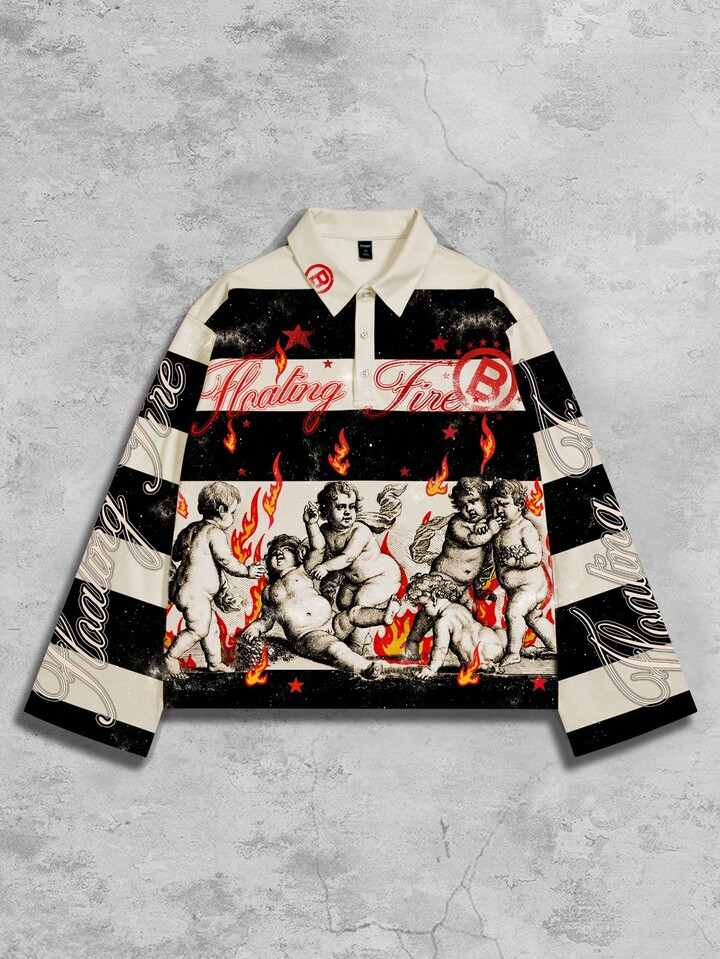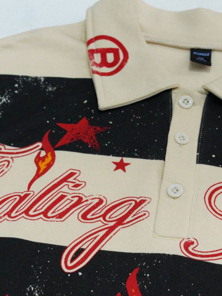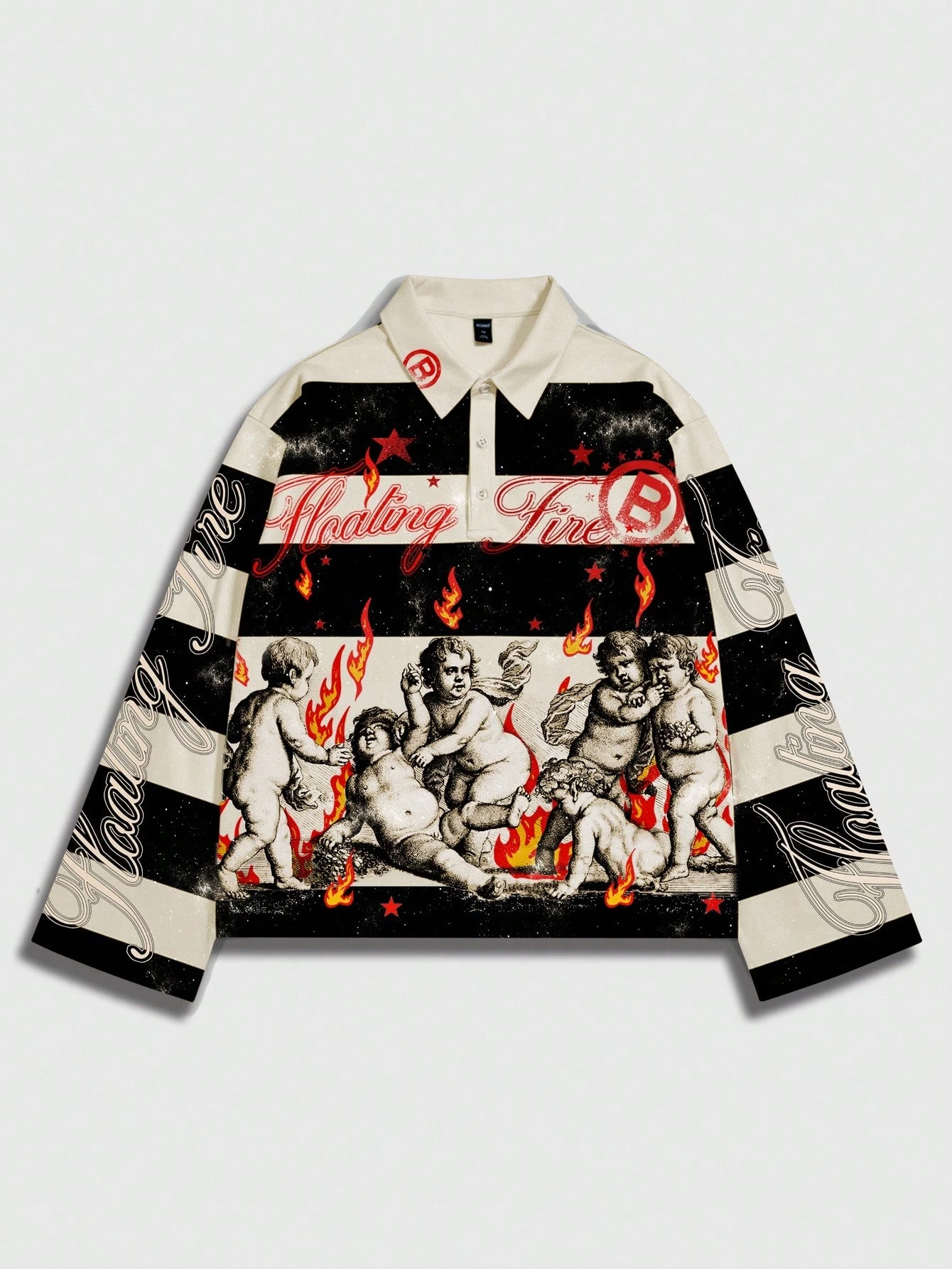 Street Life Men's Street Graphic Print Striped Polo Collar Long Sleeve T-Shirt, Autumn/Winter