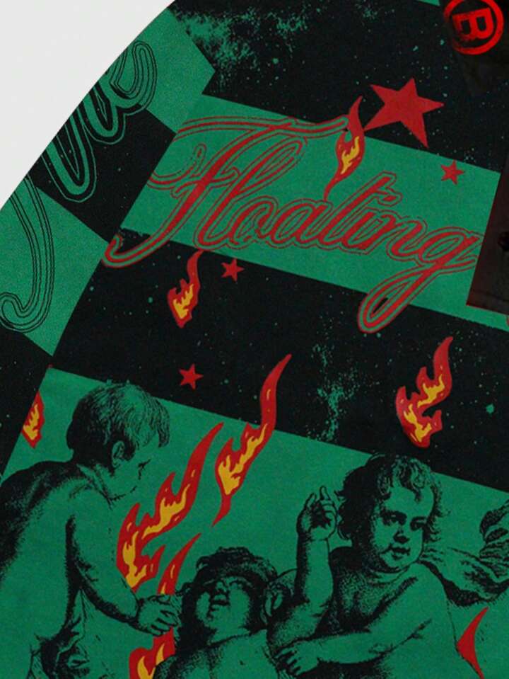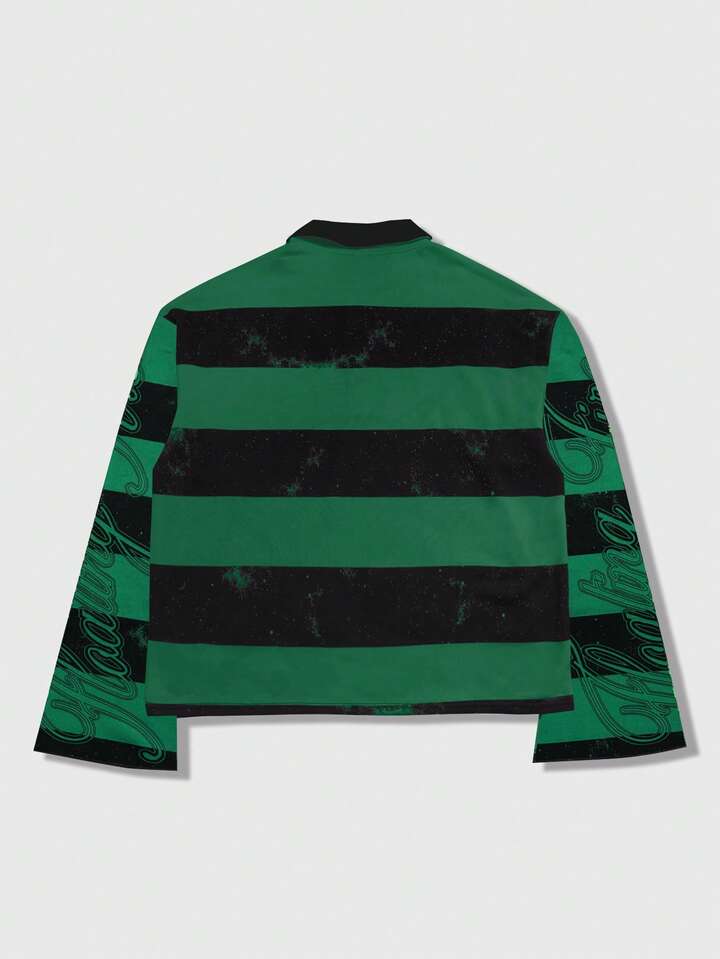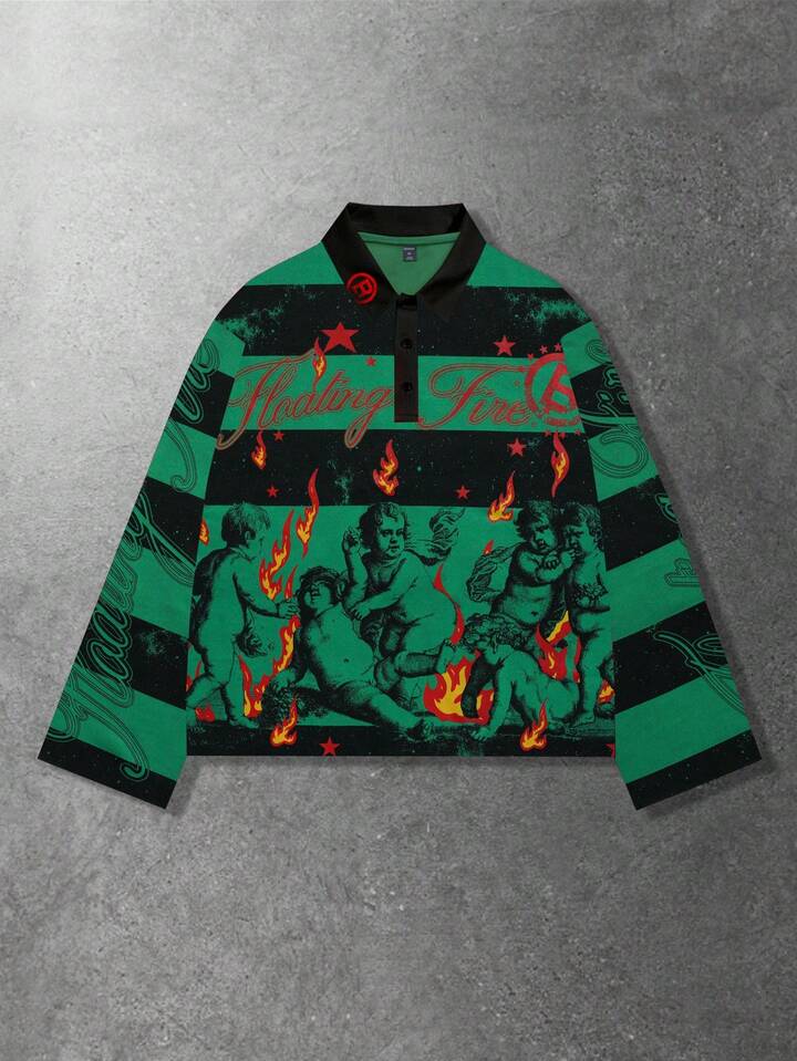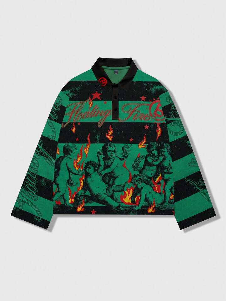 Street Life Men's Street Graphic Print Striped Polo Collar Long Sleeve T-Shirt, Autumn/Winter