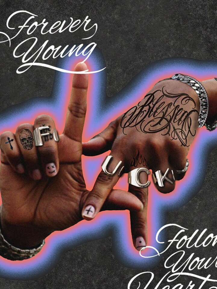 Street Life Men's Street Personalized Print Loose Short Sleeve T-Shirt, Summer High Street Vintage
