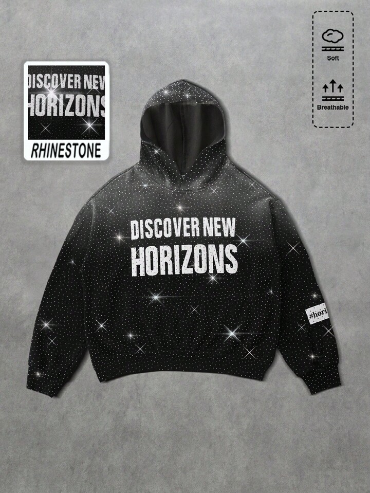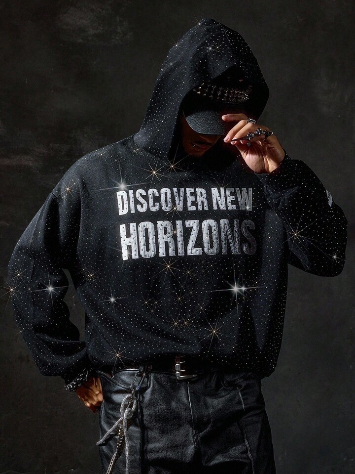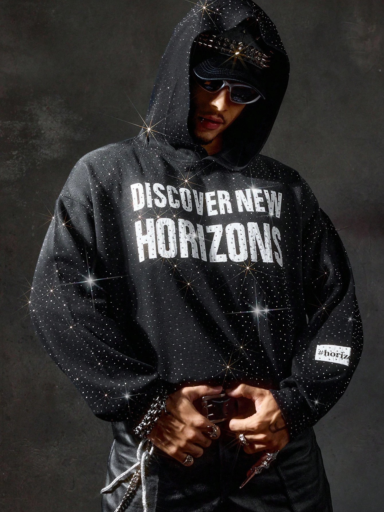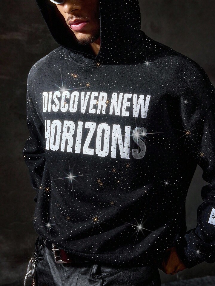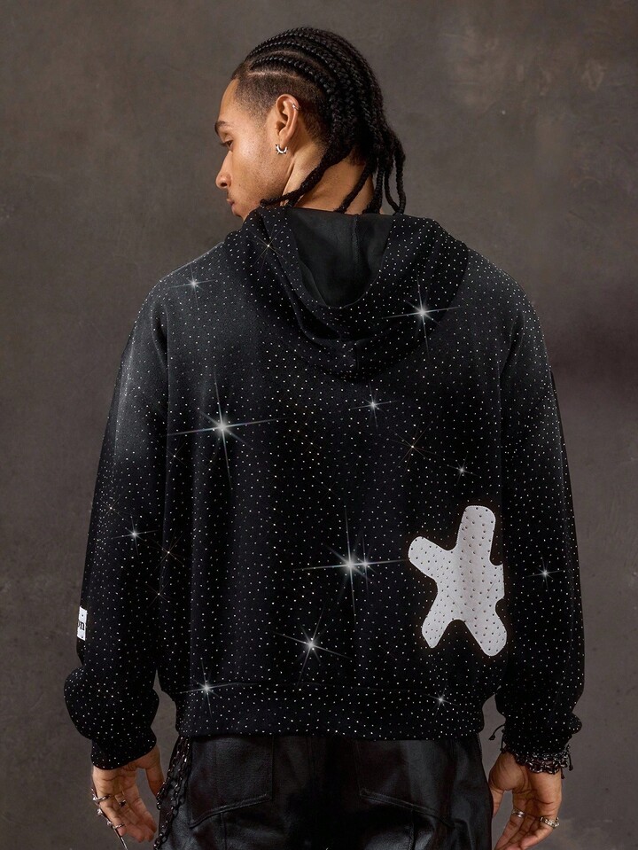 Street Life Men's Street Style Distressed Rhinestone Hoodie Sweatshirt