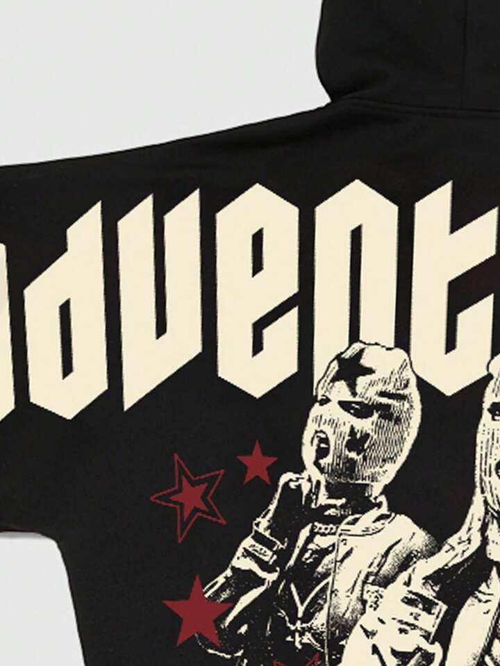 Street Life Men's Street Style Letter & Character Print Batwing Sleeve Zip-Up Hooded Sweatshirt, Suitable For Spring & Fall