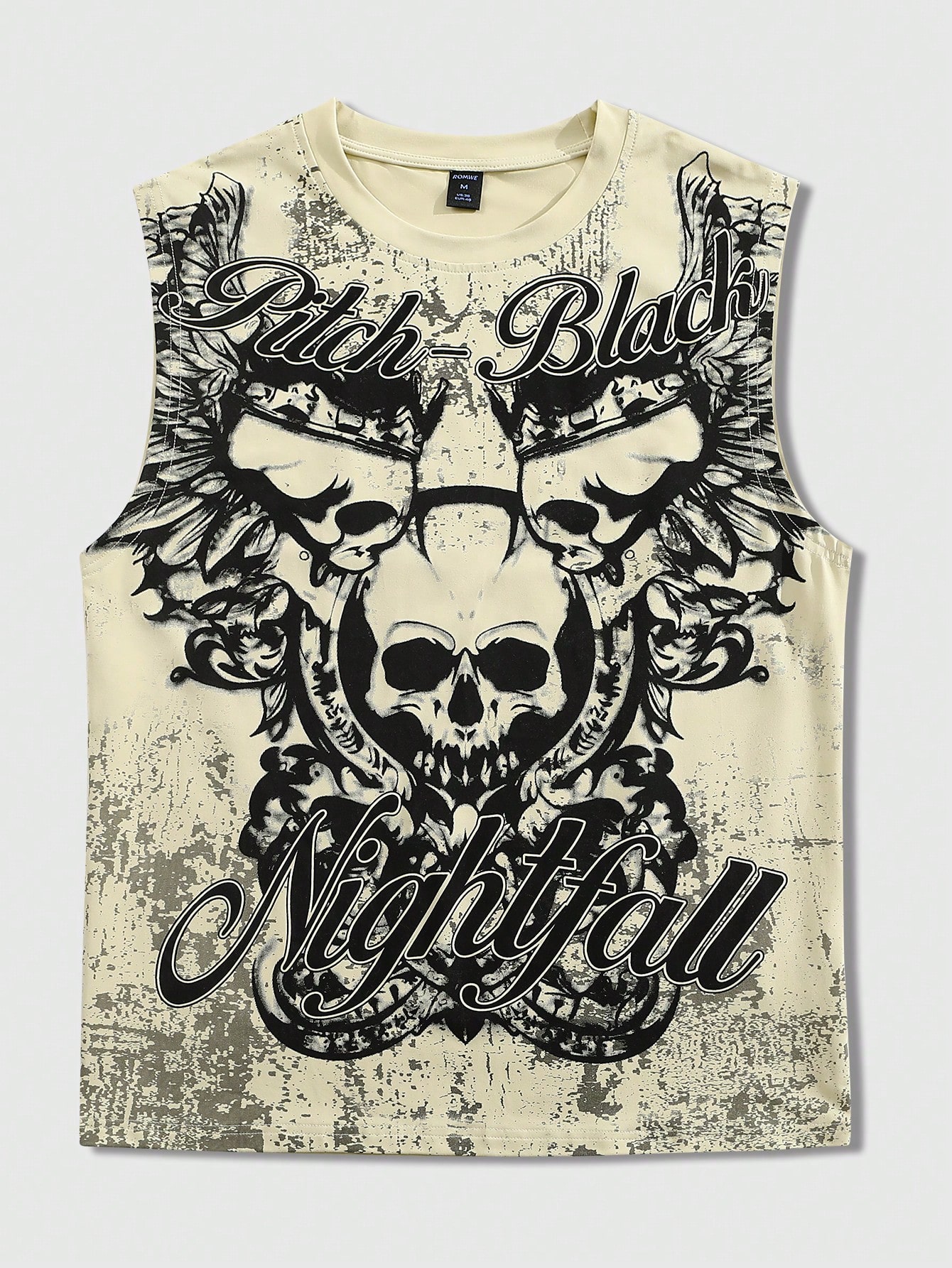 Street Life Men's Streetwear Printed Sleeveless Tank Top, Suitable For Everyday Wear, Spring/Summer