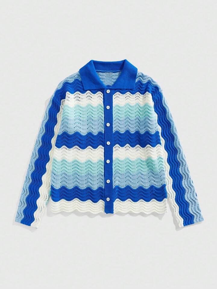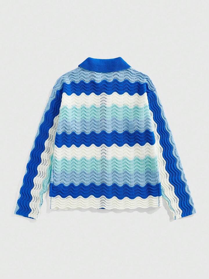 Street Life Men's Striped Knitted Cardigan Sweater, Loose Short Fit , Fall Winter