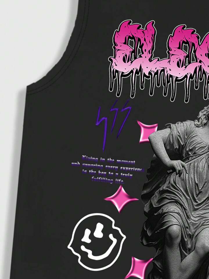 Street Life Men's Summer Casual Angel Slogan Print Top
