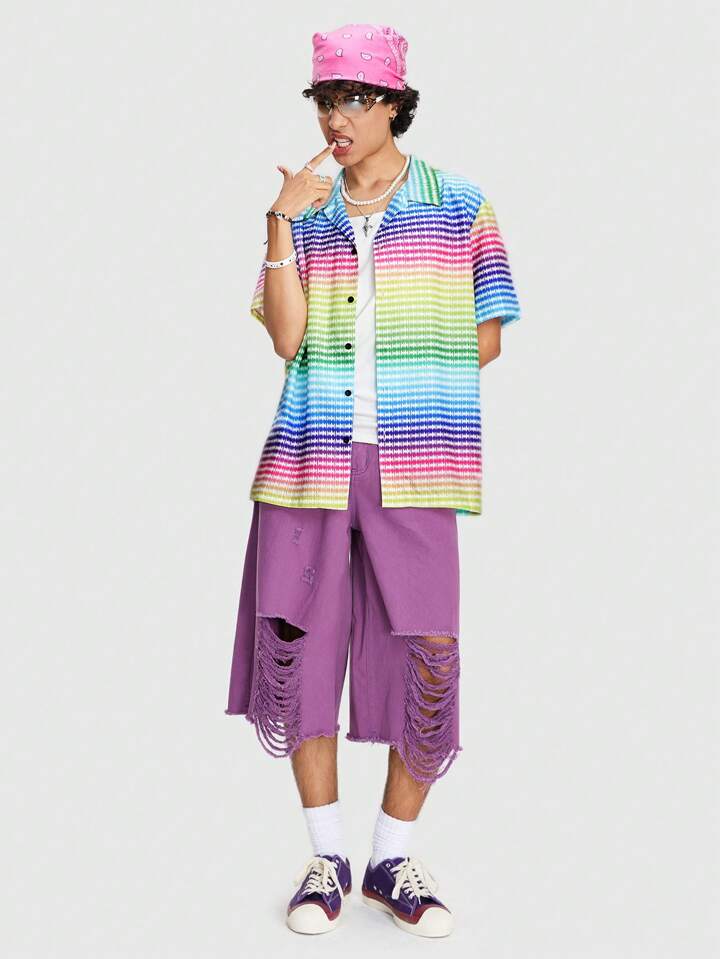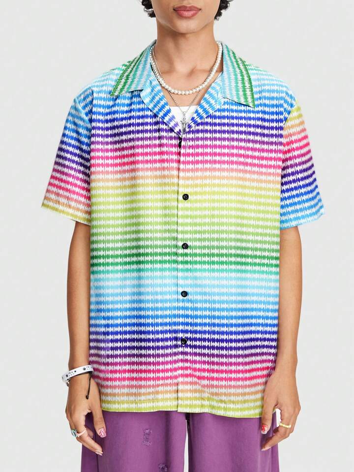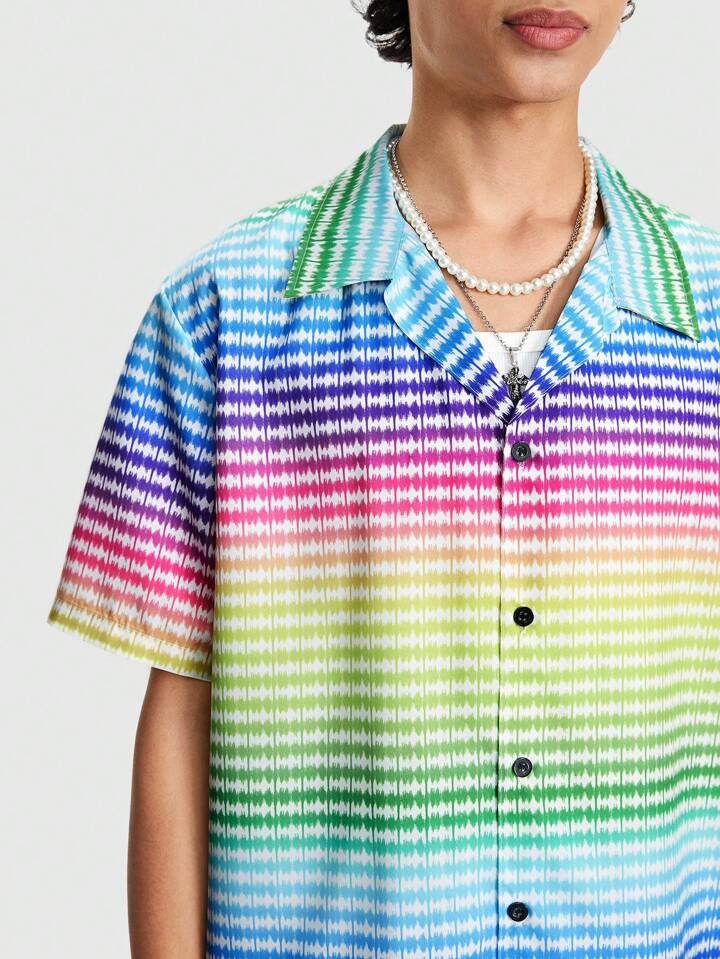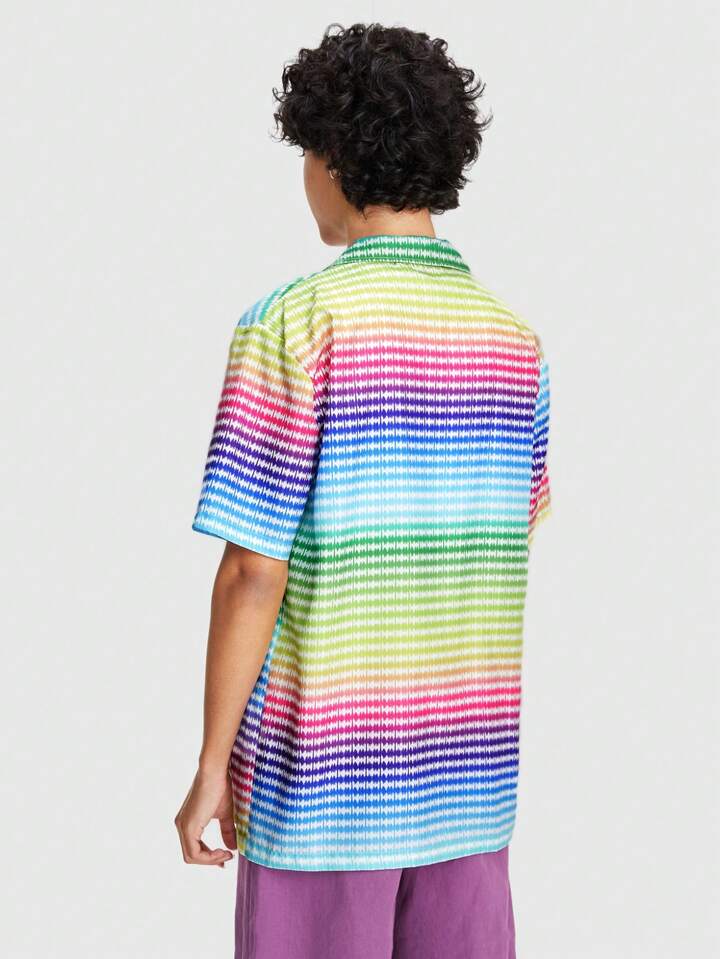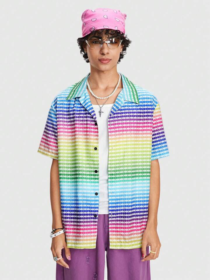 Street Life Men's Summer Colorful Striped Printed Short Sleeve Casual Shirt