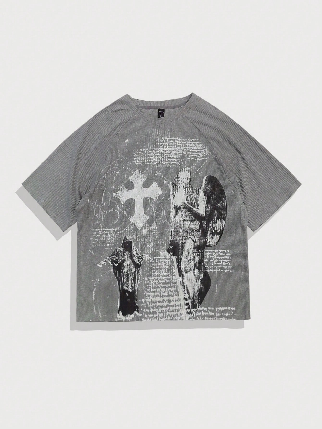 Street Life Men's Summer Goth Slogan & Cross Print Round Neck Short Sleeve Casual T-Shirt