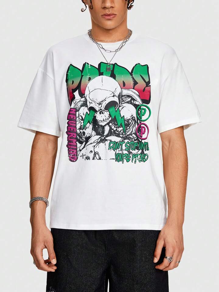 Street Life Men's Summer Round Neck Short Sleeve Casual T-Shirt Printed With Letter And Skull